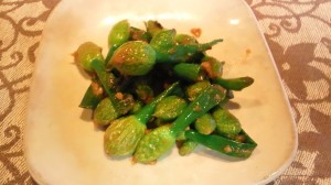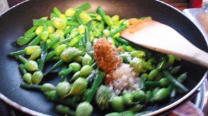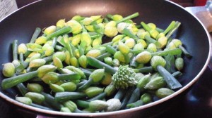 戴いたねぎ坊主を、油をひいてフライパンで炒めます。