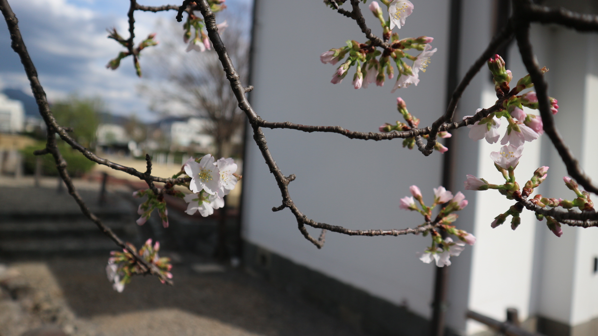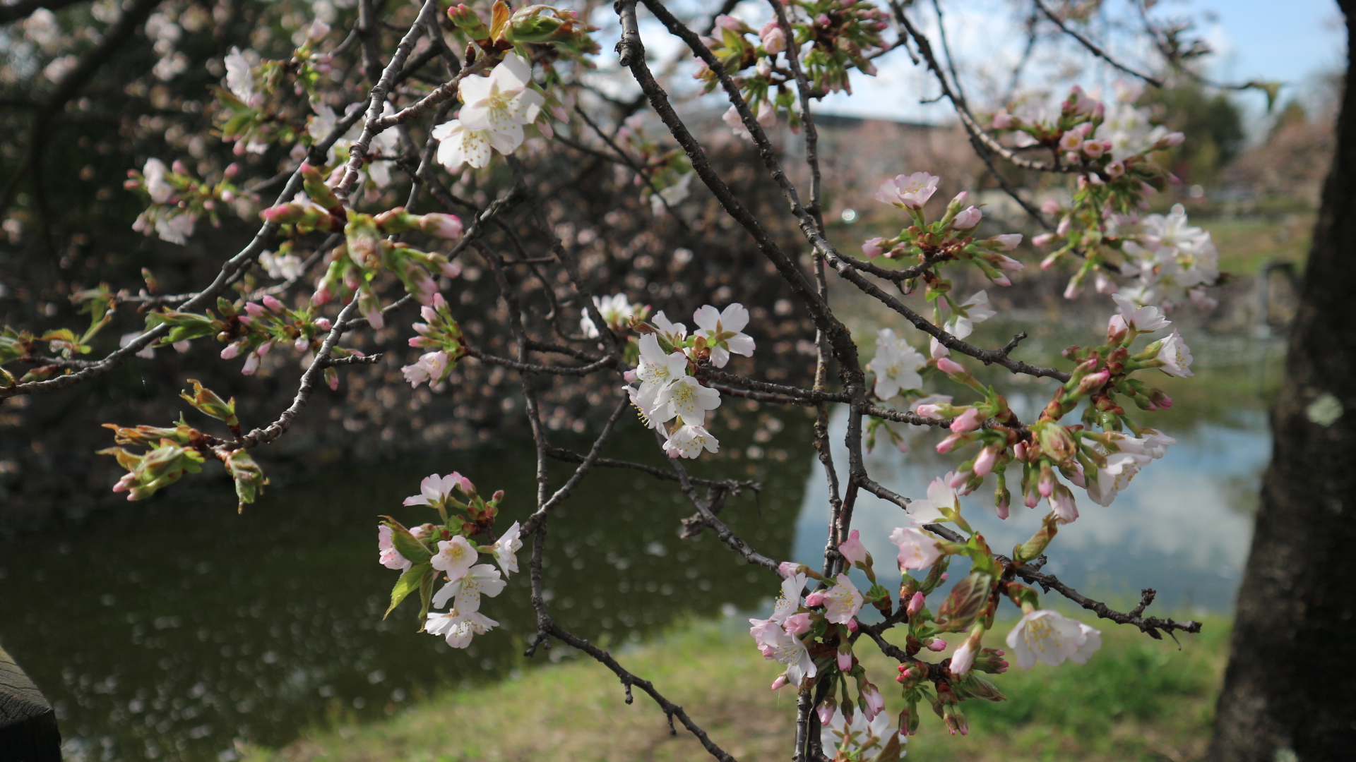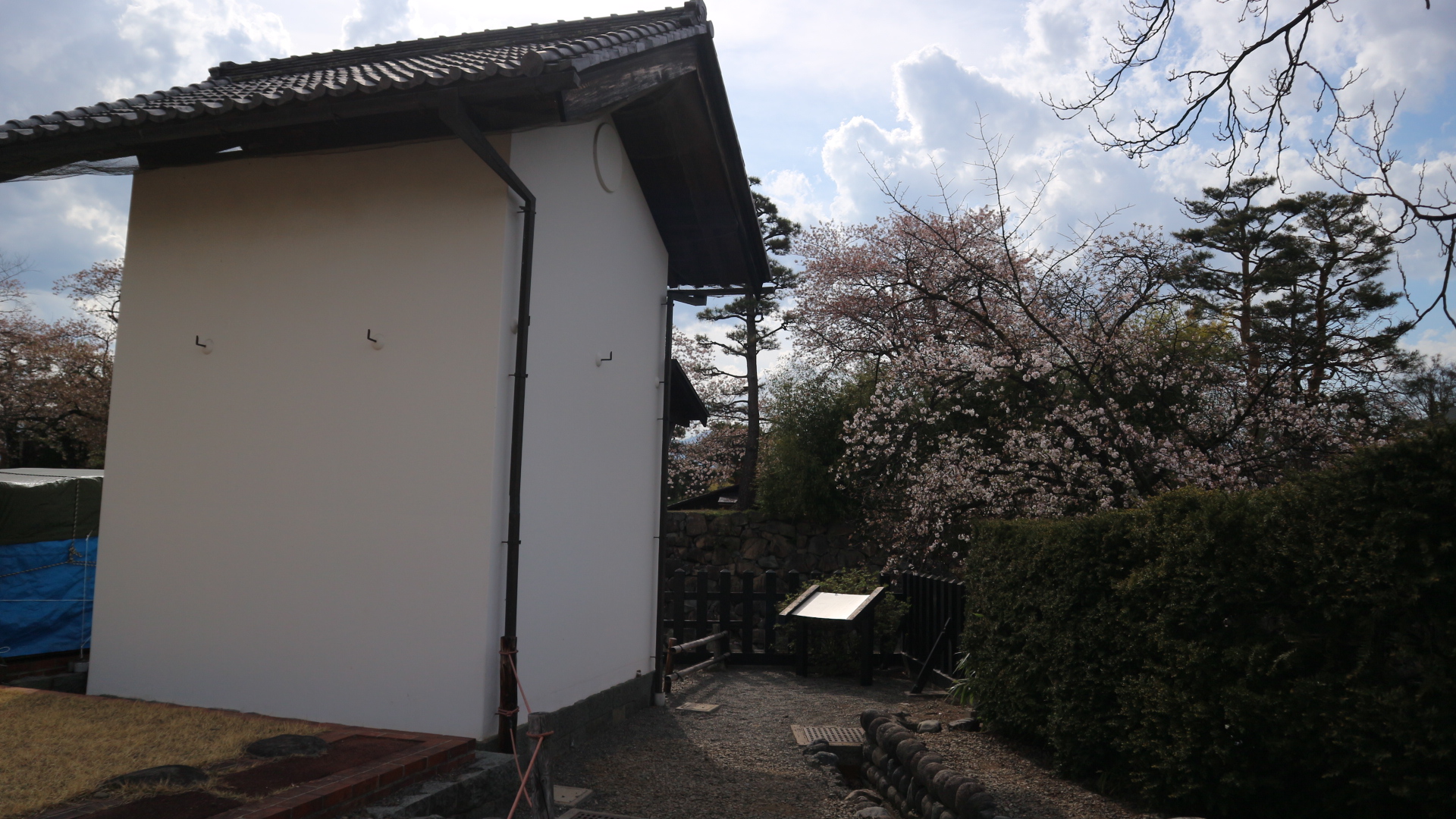 松本城二の丸御殿跡遅咲き桜も満開