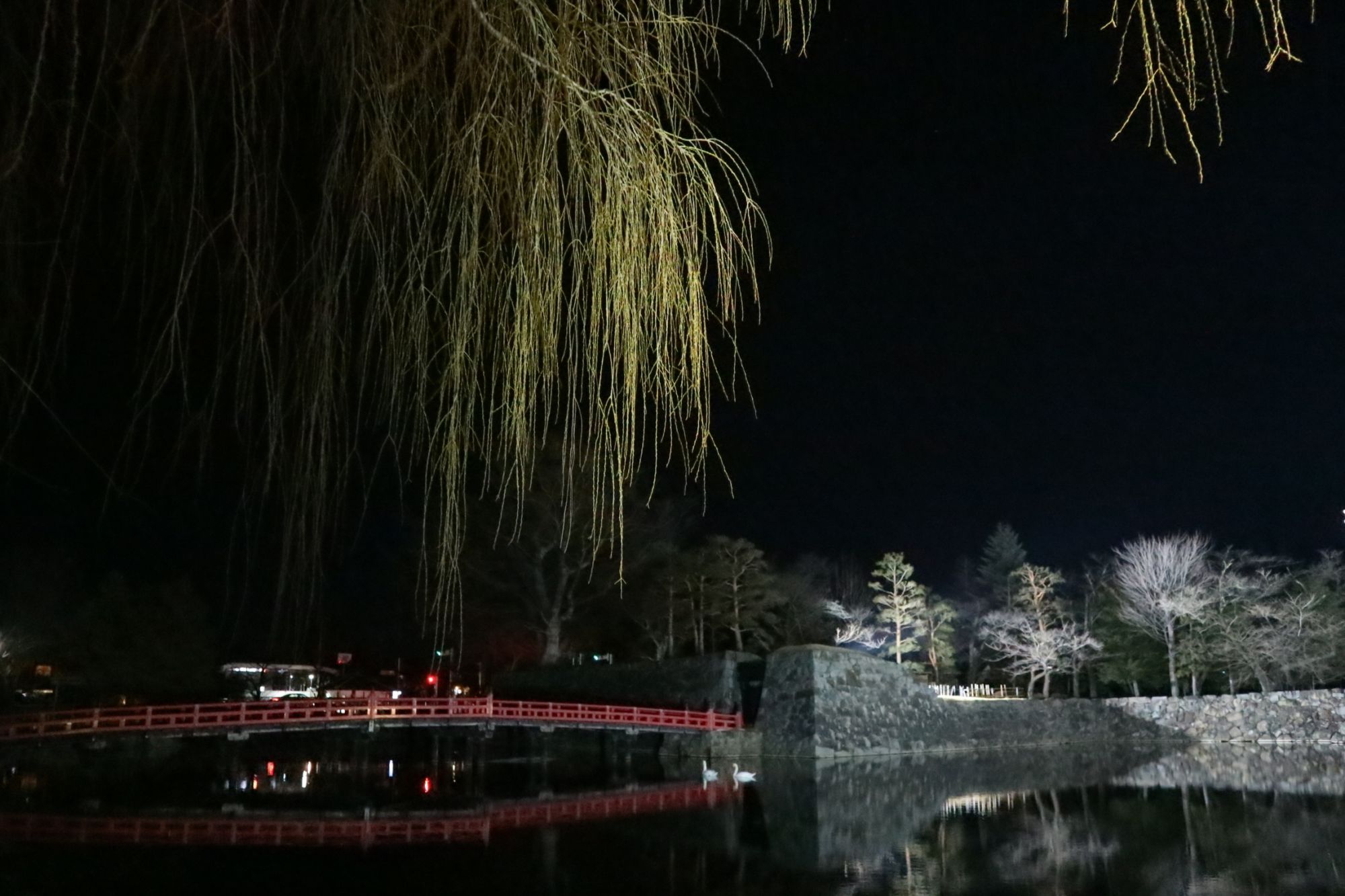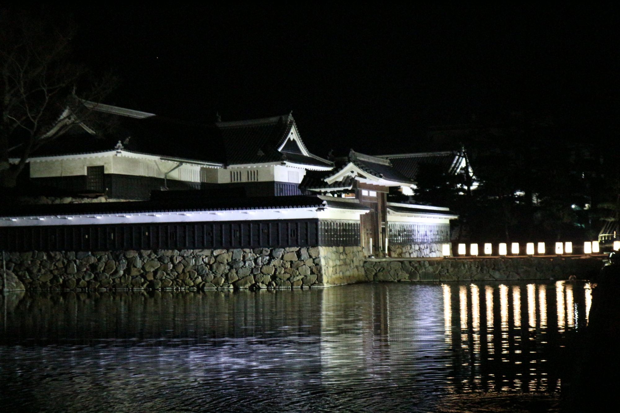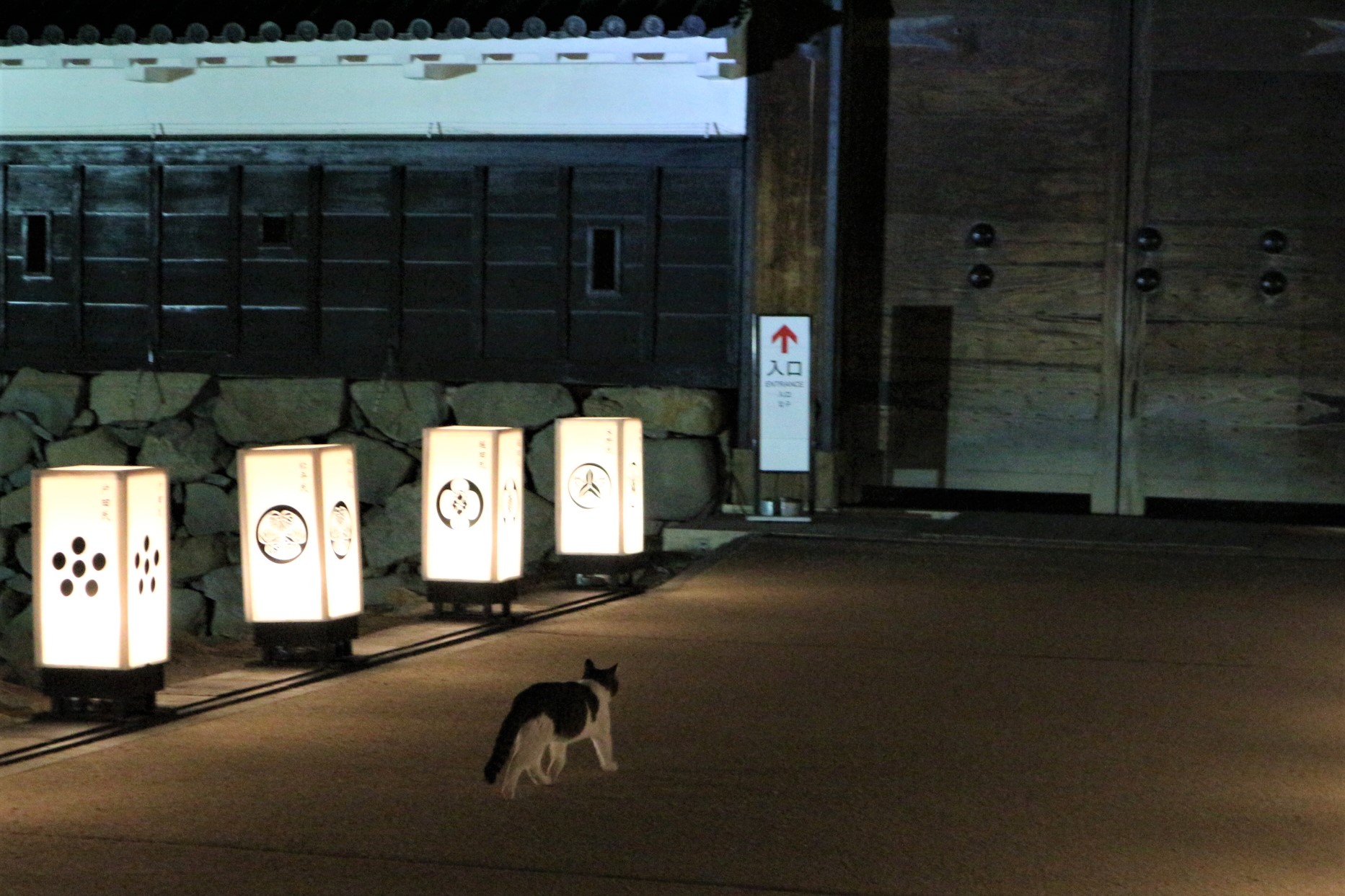 松本城暖かい2月の夜 猫もお散歩