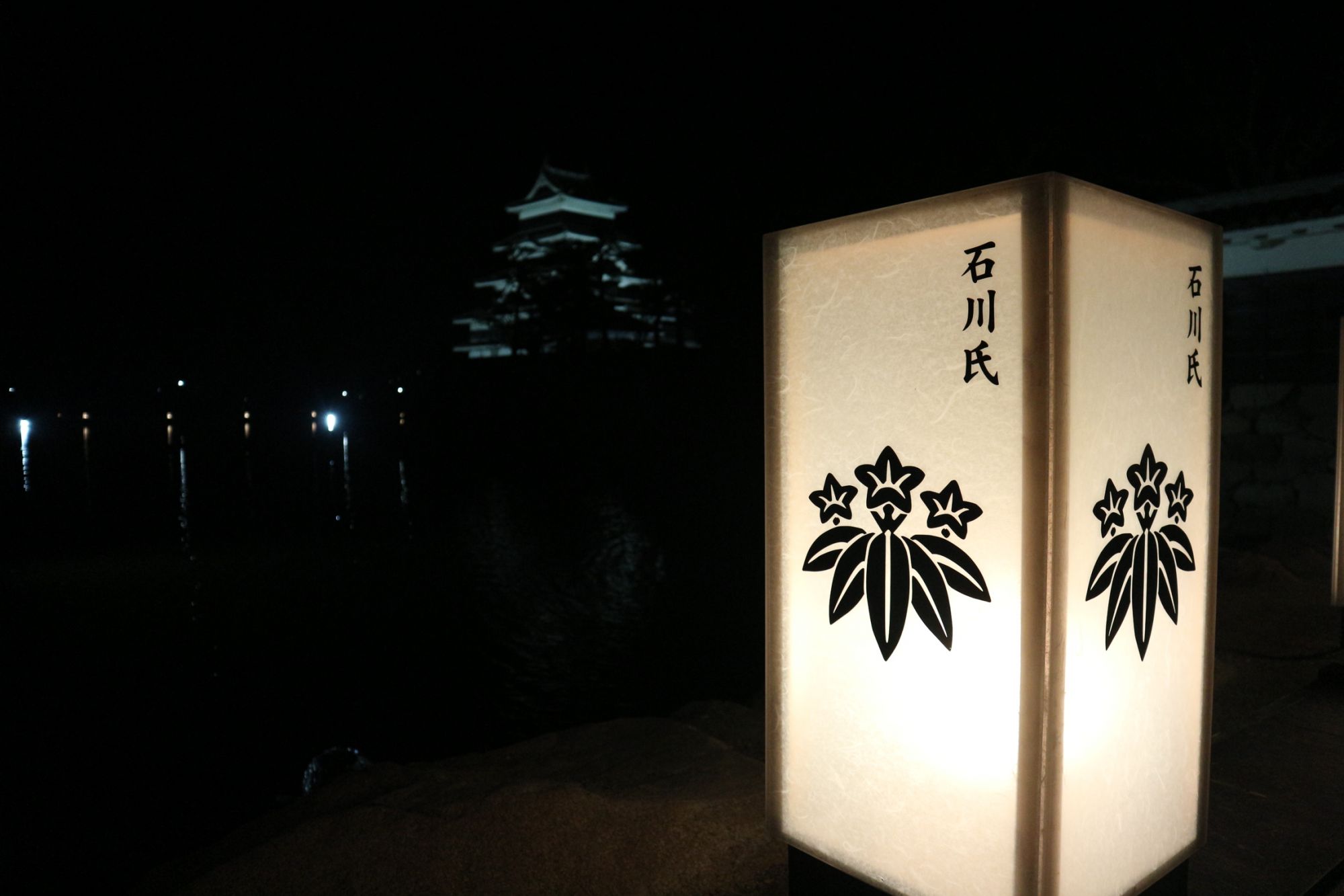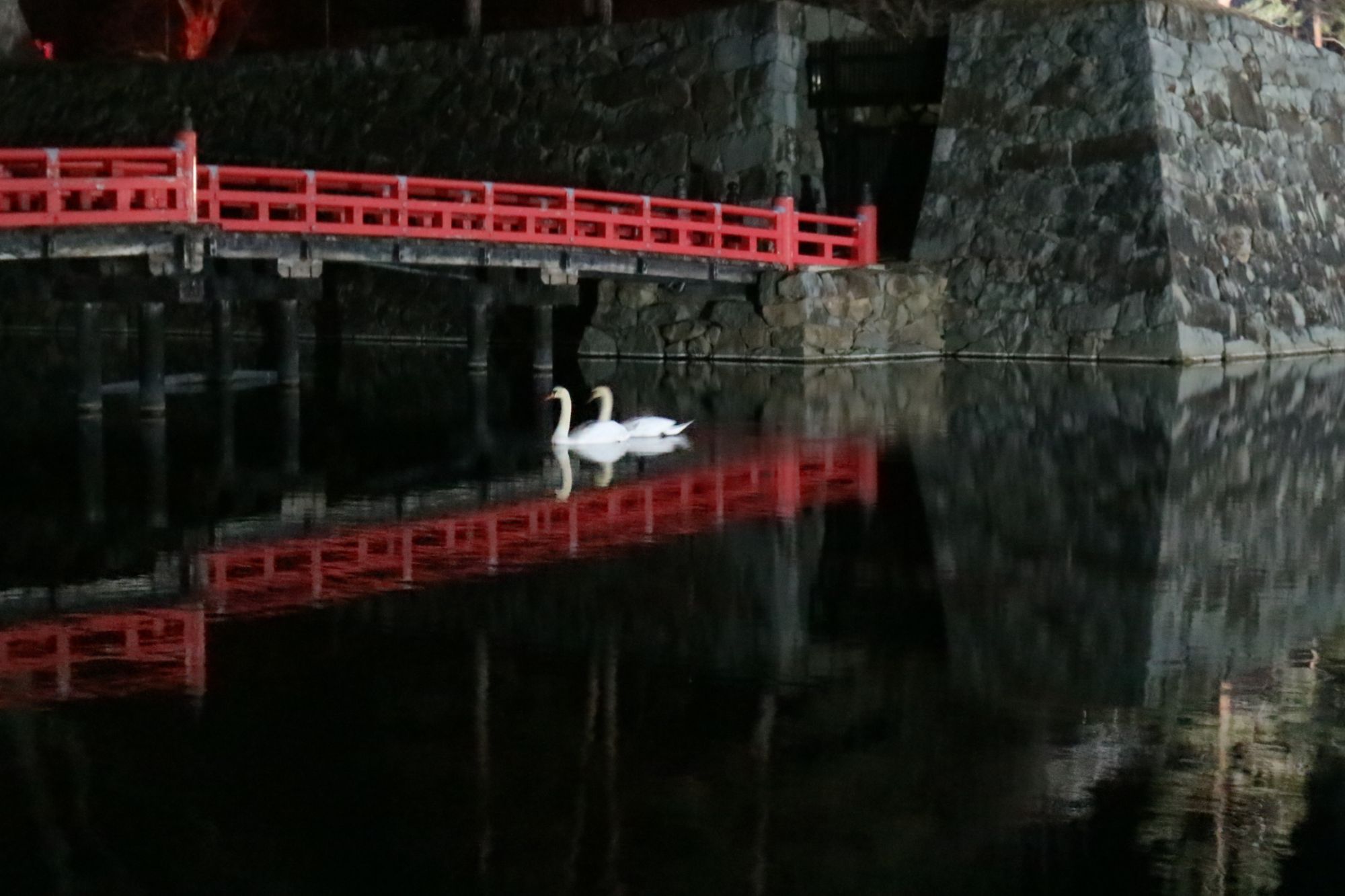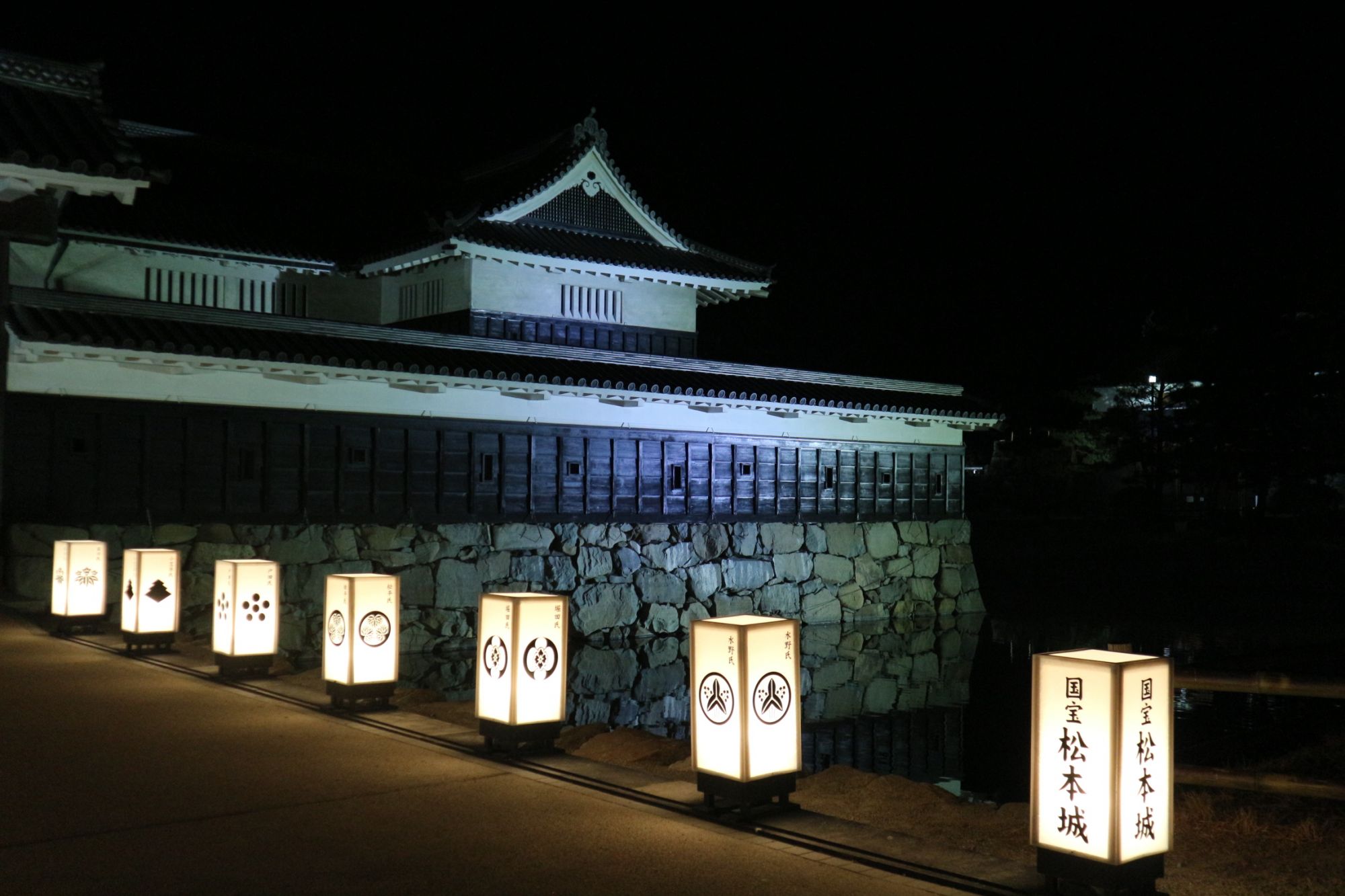 松本城暖かい2月の夜 猫もお散歩