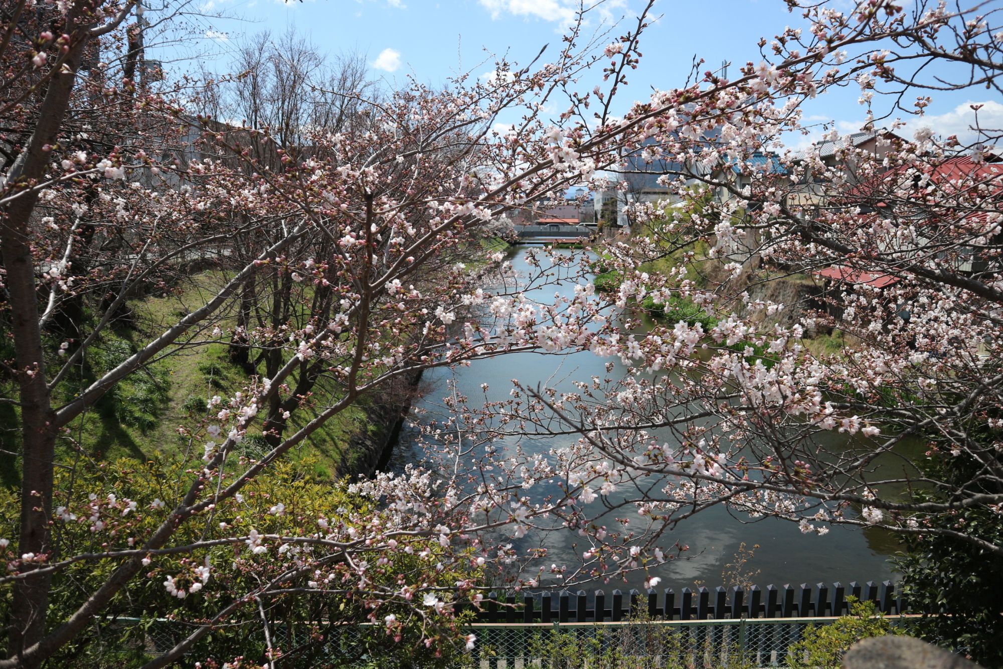 堀の周りにソメイヨシノが並びます。