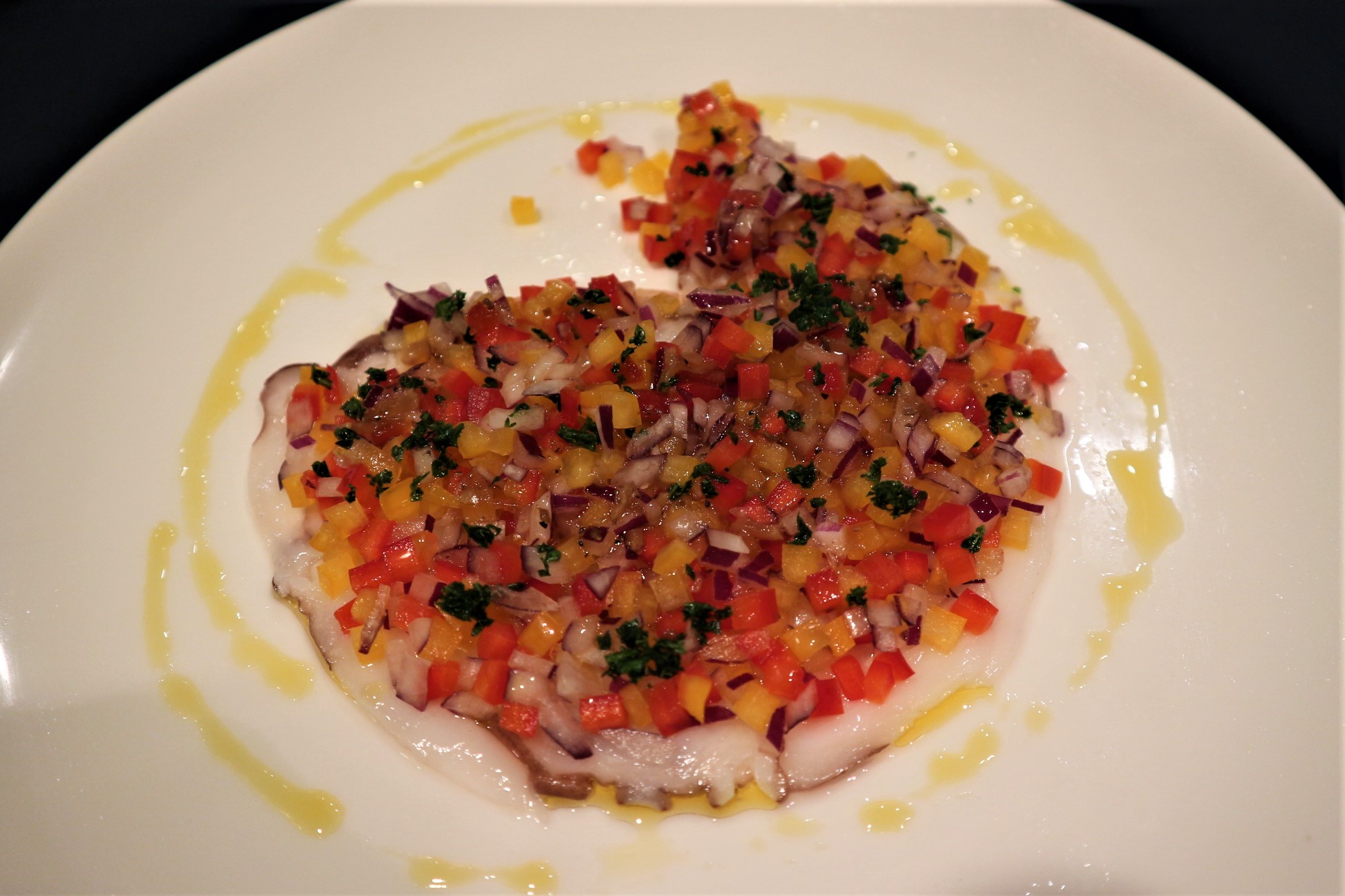 鰹 香草でグリルした大きな鰹を檸檬やマスタードで頂きました。
