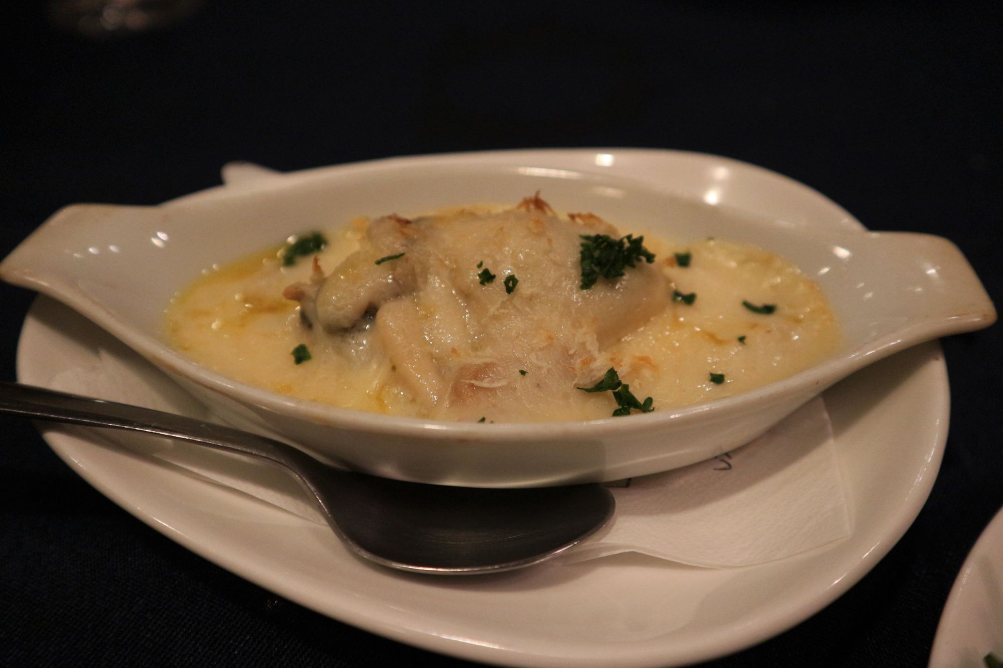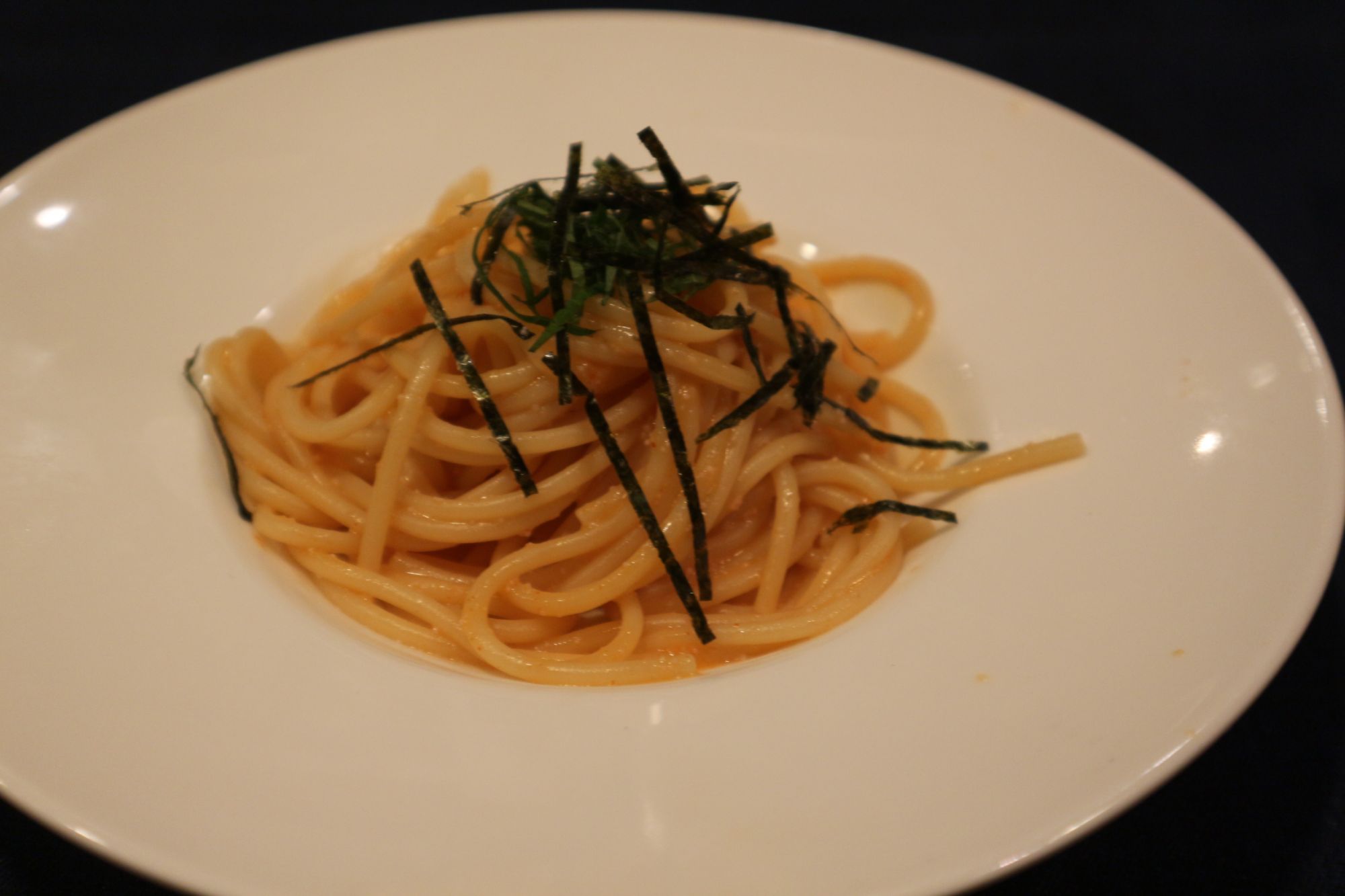 牡蠣グラタンは、牡蠣が1つ入りホワイトソースと相性ピッタリです。明太子スパゲッティは、結構辛口でコース料理のアクセントになりました。