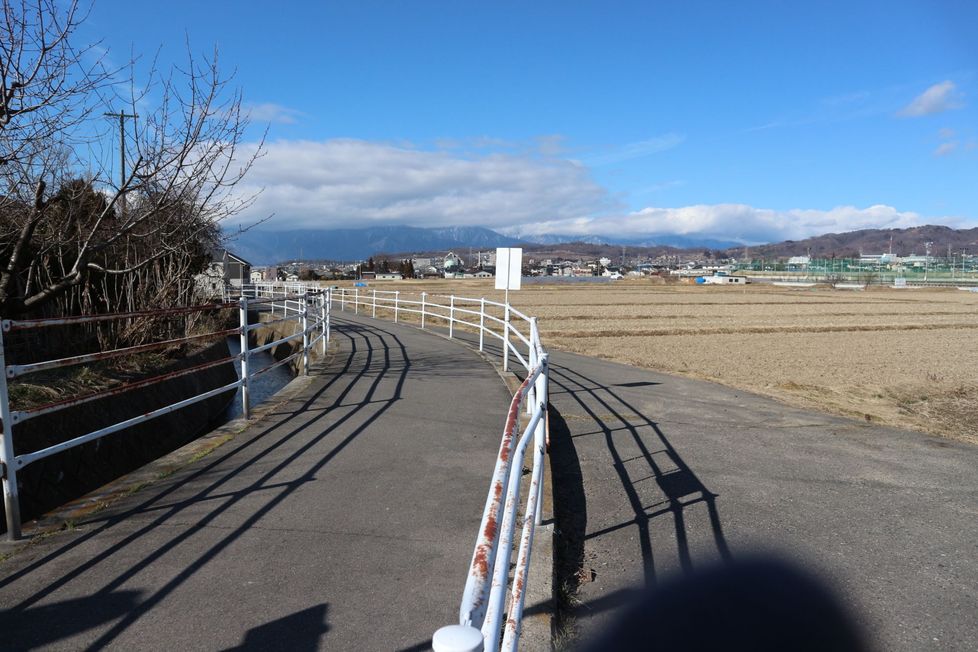 自転車に乗って山辺地区の「田園遊歩道」を走ります。