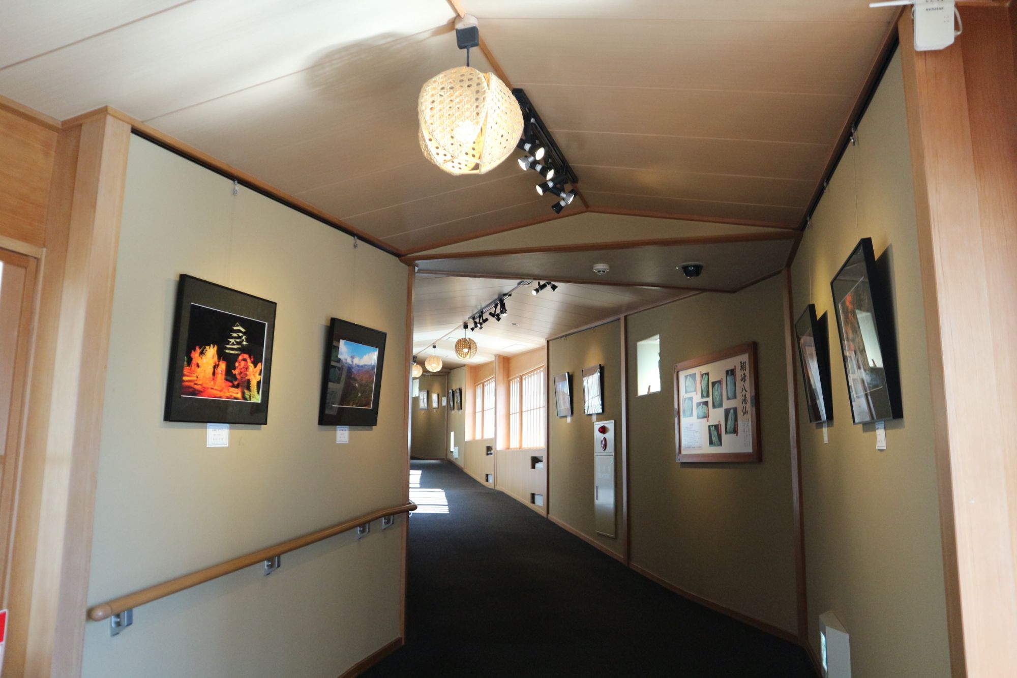 緩やかなスロープを昇っていくと写真パネルなど飾られギャラリーになっています。