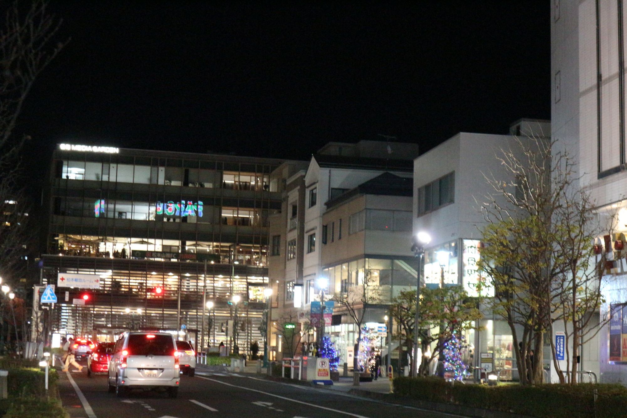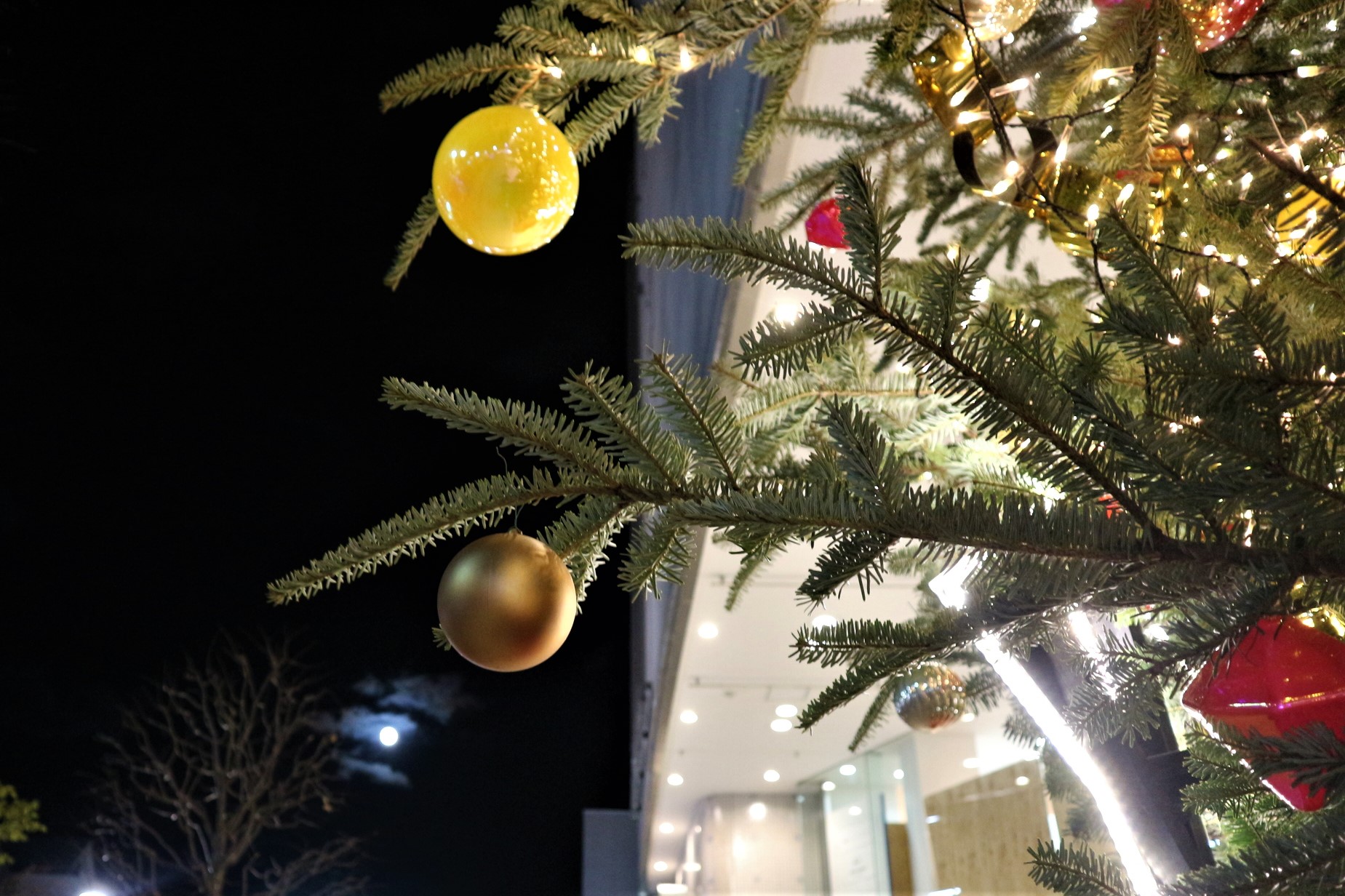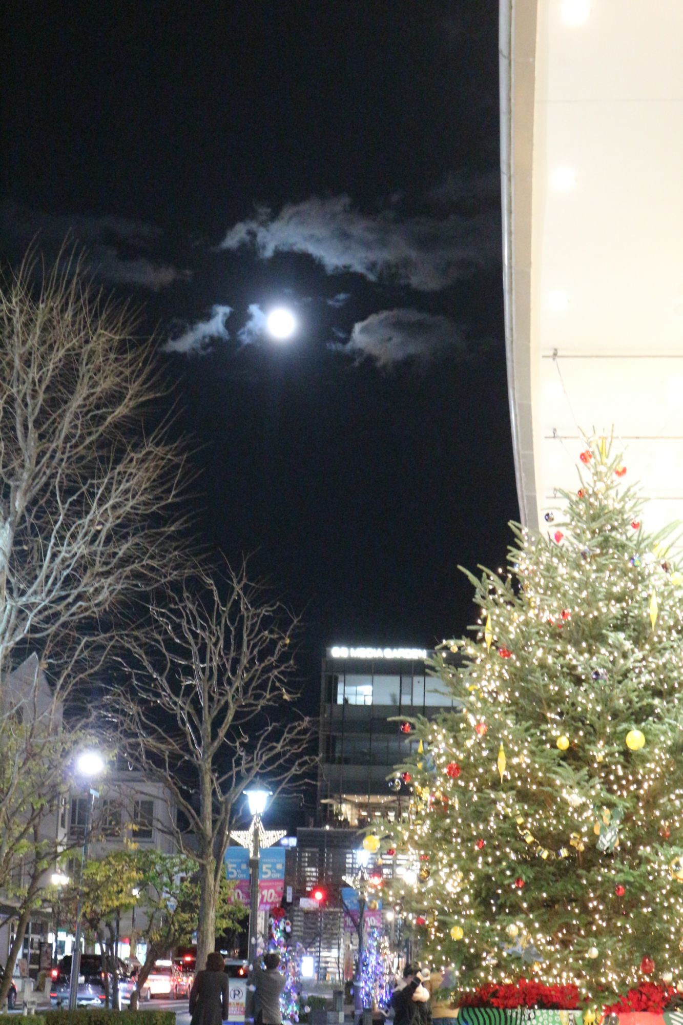 松本パルコのクリスマスツリーと満月