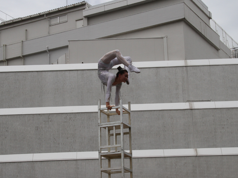 空に、もうすぐ足が届きそう!というくらいの高さまで、椅子を重ねて倒立。慎重に一つずつ上がっていく時には、観客は固唾をのんでみまもります。