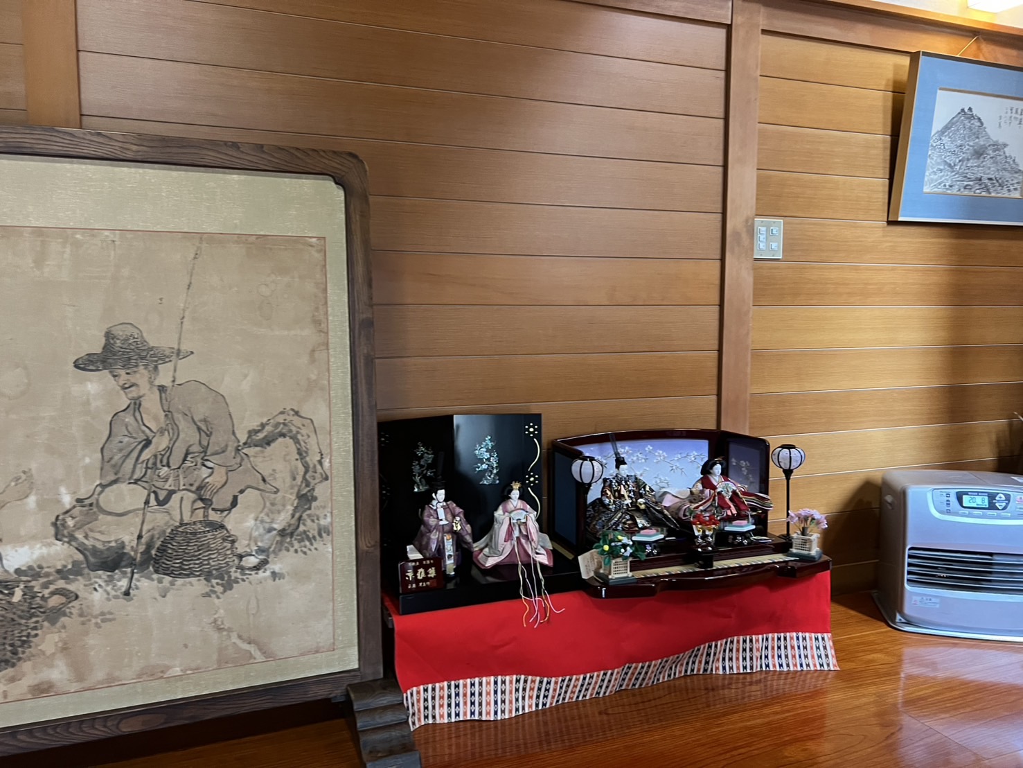 草間彌生さんの版画をはじめ素晴らしい調度品や絵そして季節がらお雛様が並んでいます。
