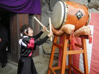 雪の開門式となりました。元旦9時から解放していたのに合わせ、開門式も例年より1時間早く9時からでした。