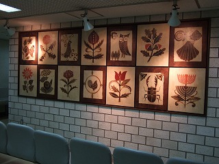 待合室のパネルは虫や動物・草花などがかわいくデザインされていて見ていると微笑んでしまいますね。