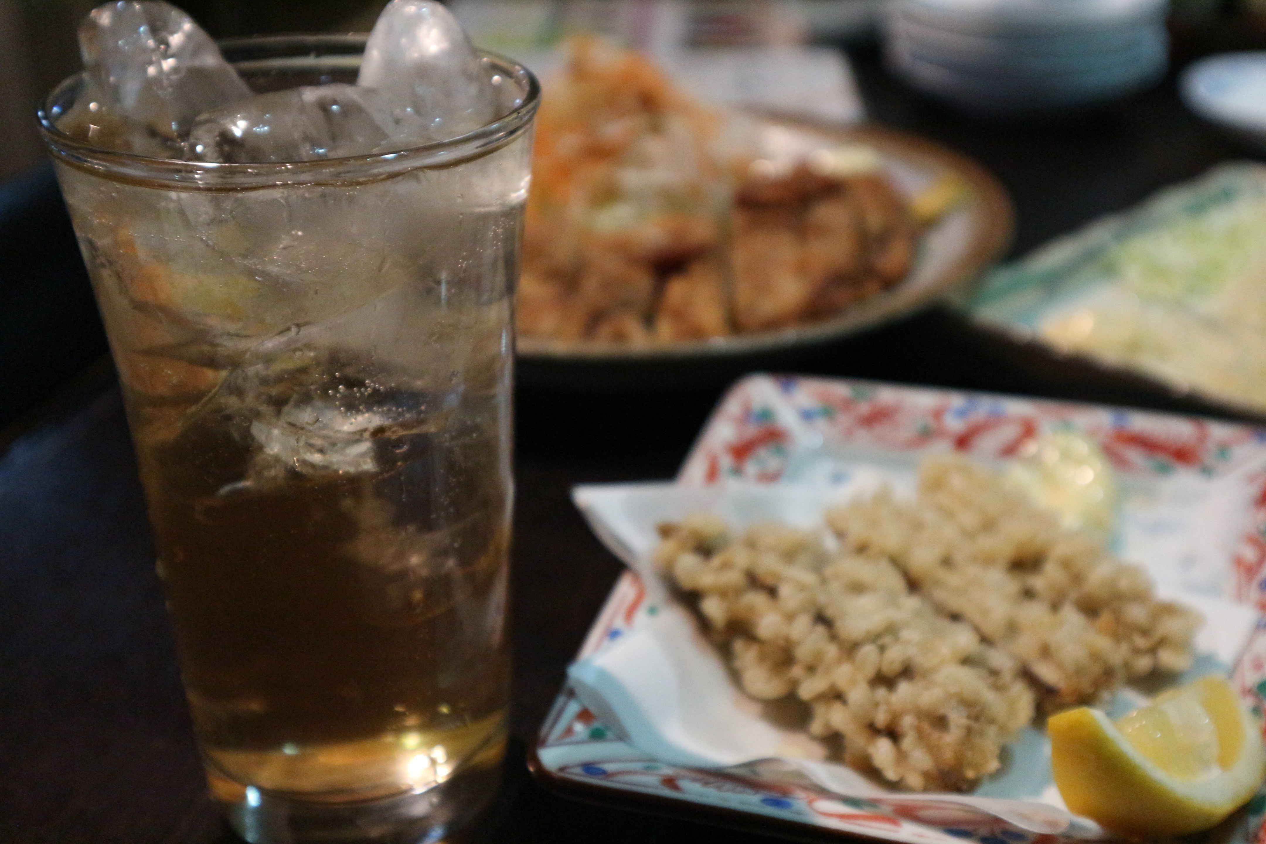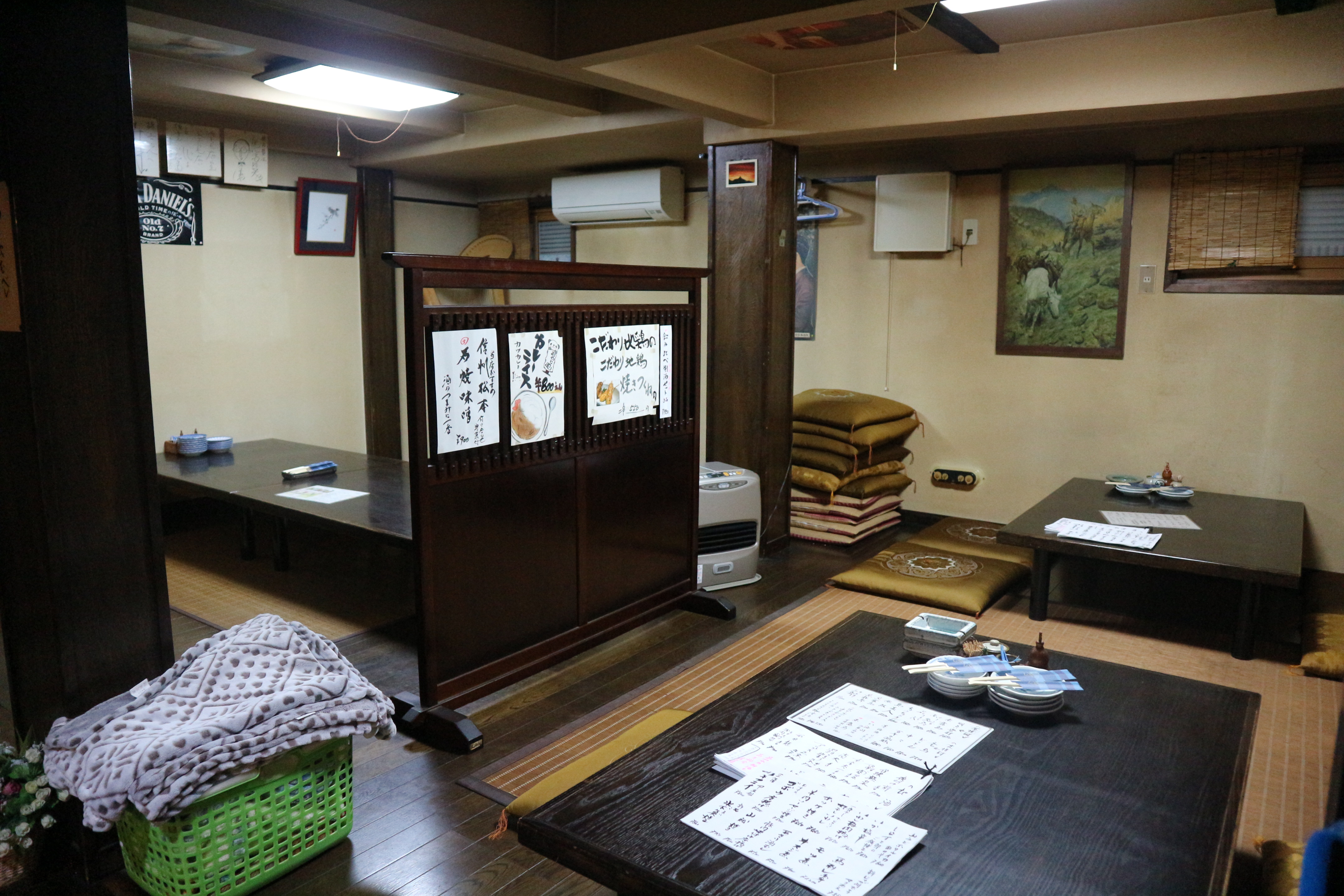 のれんをくぐりドアを開けるとそこは居酒屋「樽吉」があります。