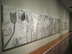 入ってすぐに見れるのは、前回の常設展で展示された白のキャンバスにアクリルマーカーで描きあげた連作。