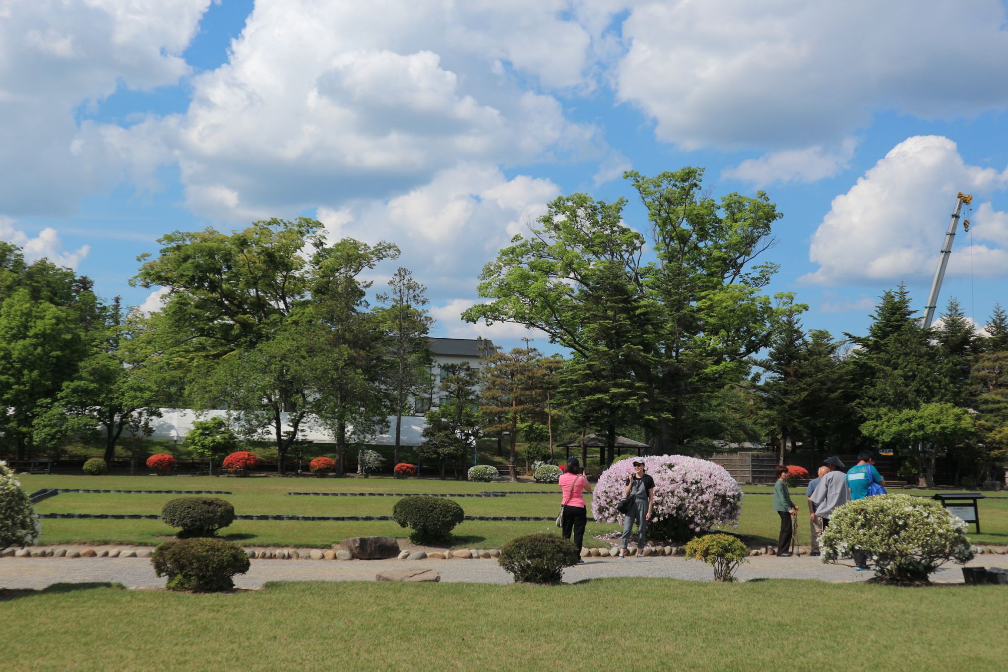 桜が散ったあとの国宝松本本丸庭園は、花盛りです!