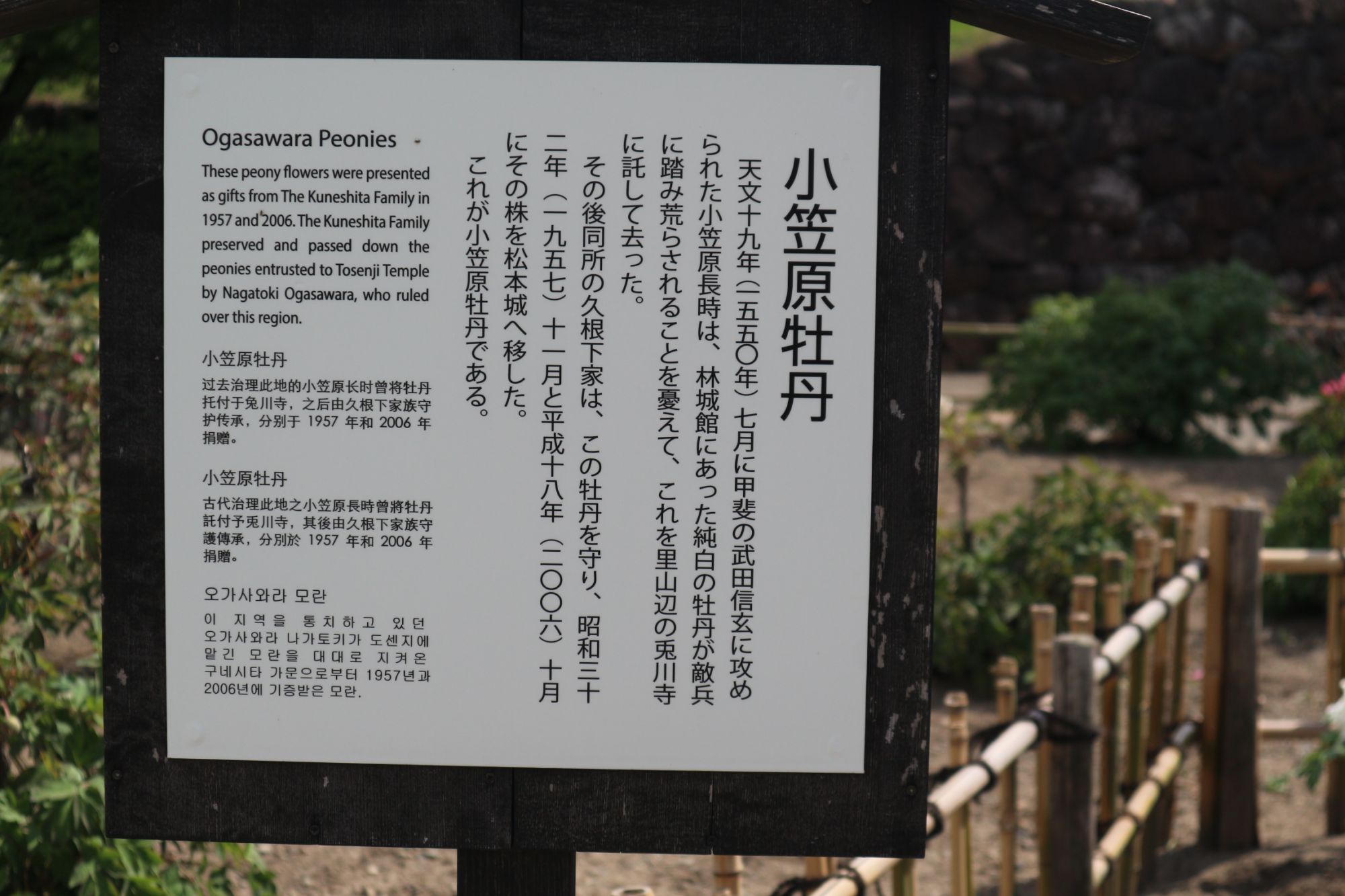 その後同所の久根下家は、この牡丹を守り、昭和三二年(一九五七年)十一月と平成十八年(二〇〇六)一〇月にその株を松本城に移した。