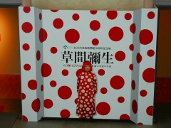 7月13日にオープニングを迎えた 草間彌生展。オープニングではビデオレターでしたが、先日28日にはご本人も来られてセレモニーもありました。(今は自分の写真の横にサインが入っています。)