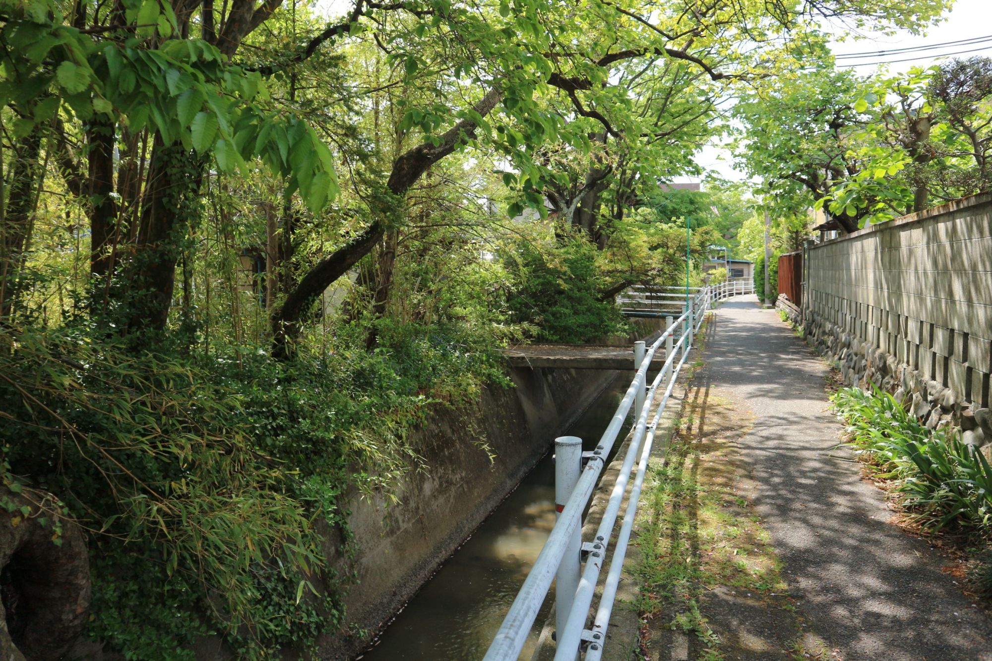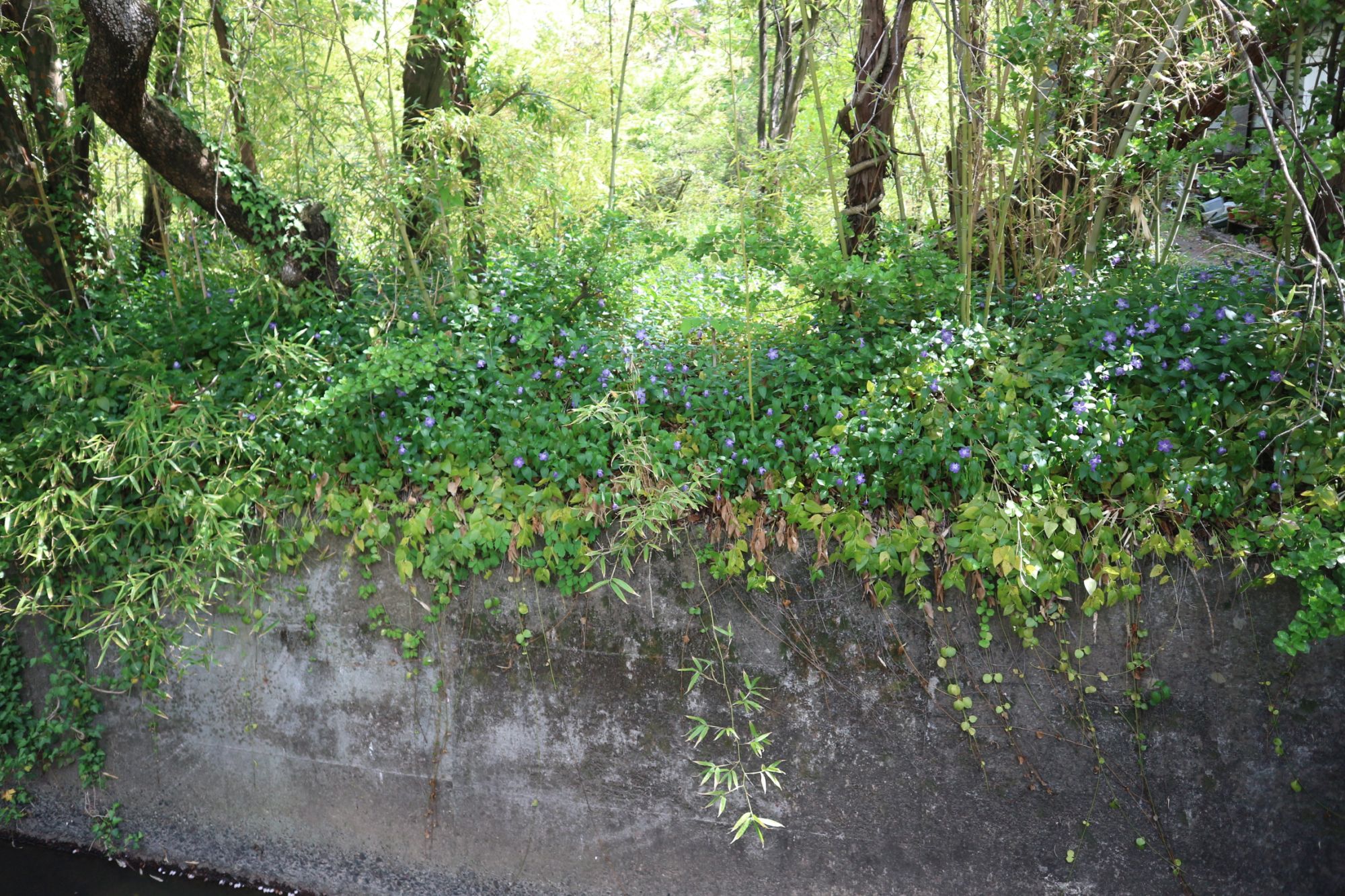 大門沢に沿い小路を歩くと季節の野草や家々の花が咲いています。そのまま西へ進むと松本市中央図書館に出ます。