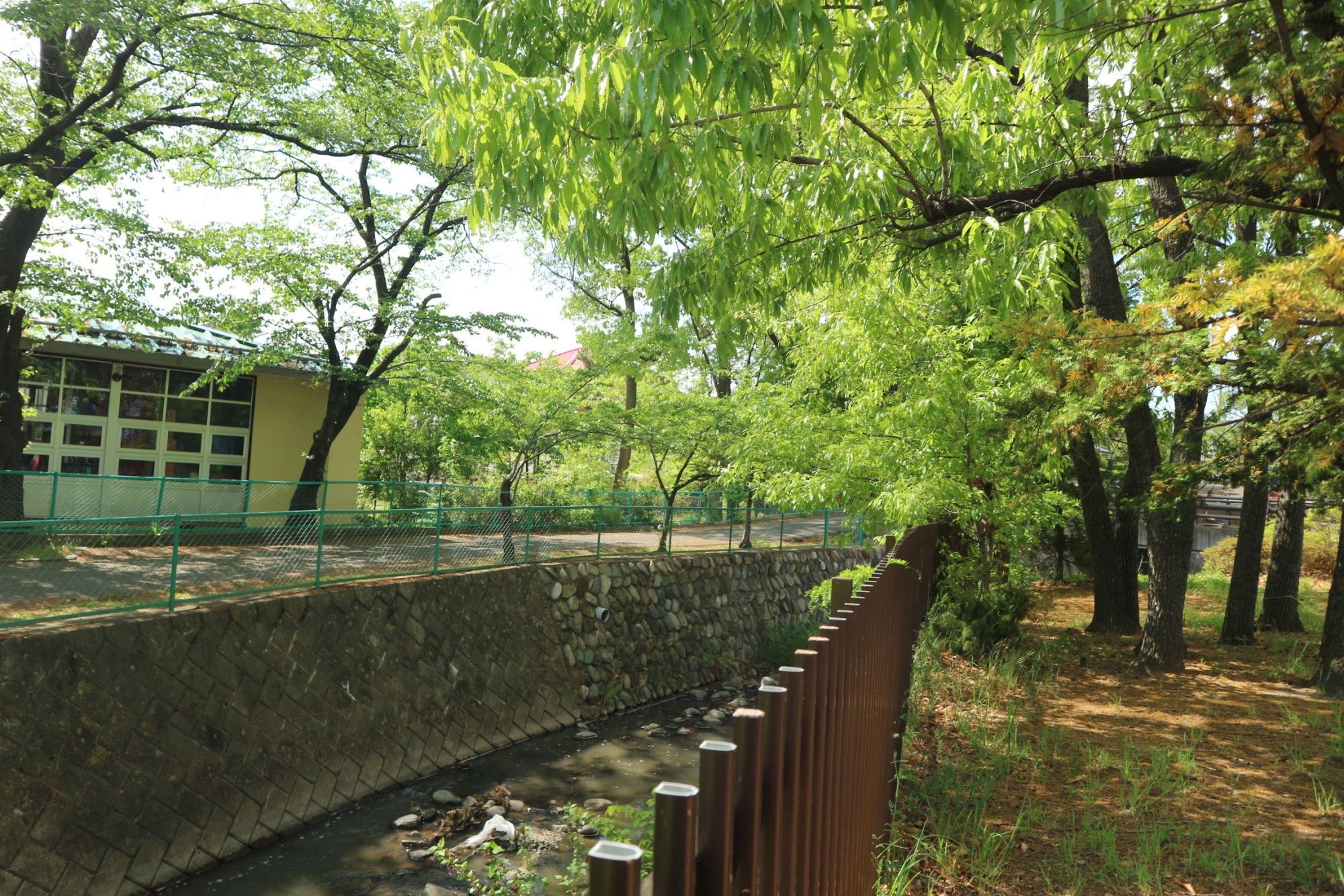 桜並木が続く大門沢、春は桜、夏は蛍も飛び交う清流です。