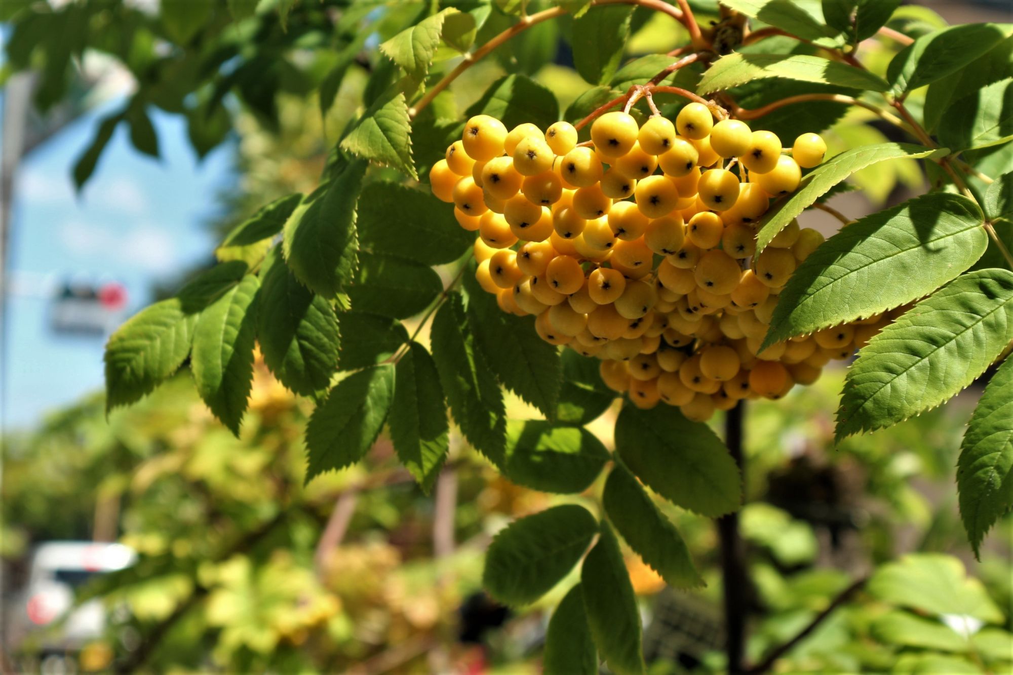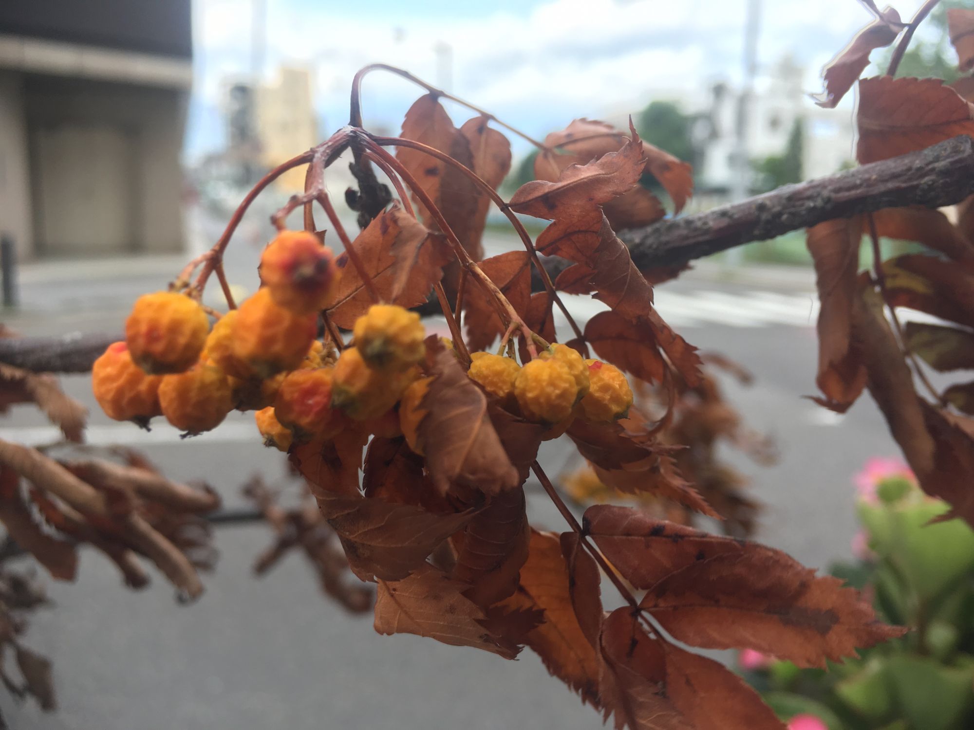 赤い実黄色い実 8月の大名町はナナカマド通り