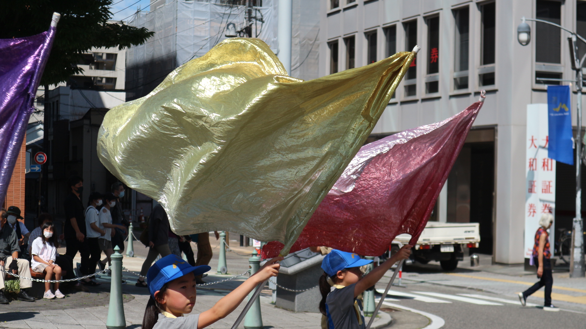 暑い中大きな楽器を歩きながら演奏するのは、小さな体ではとても大変そうでした。ガンバレ!