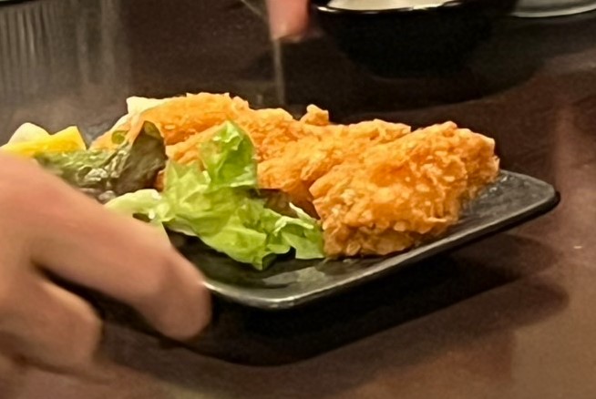 初めて食べたまぐろの唐揚げ 外はカリカリで美味しかったです。
