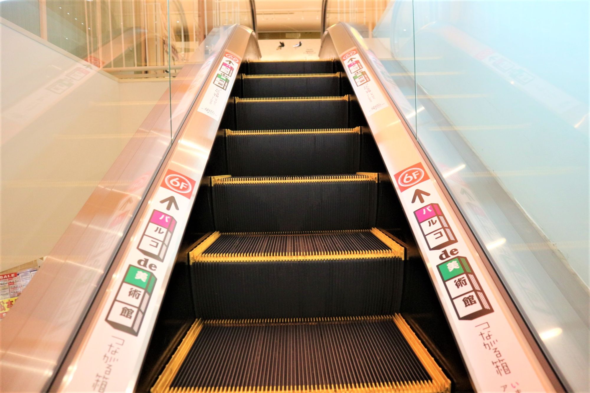 エスカレーターで上に昇ります。