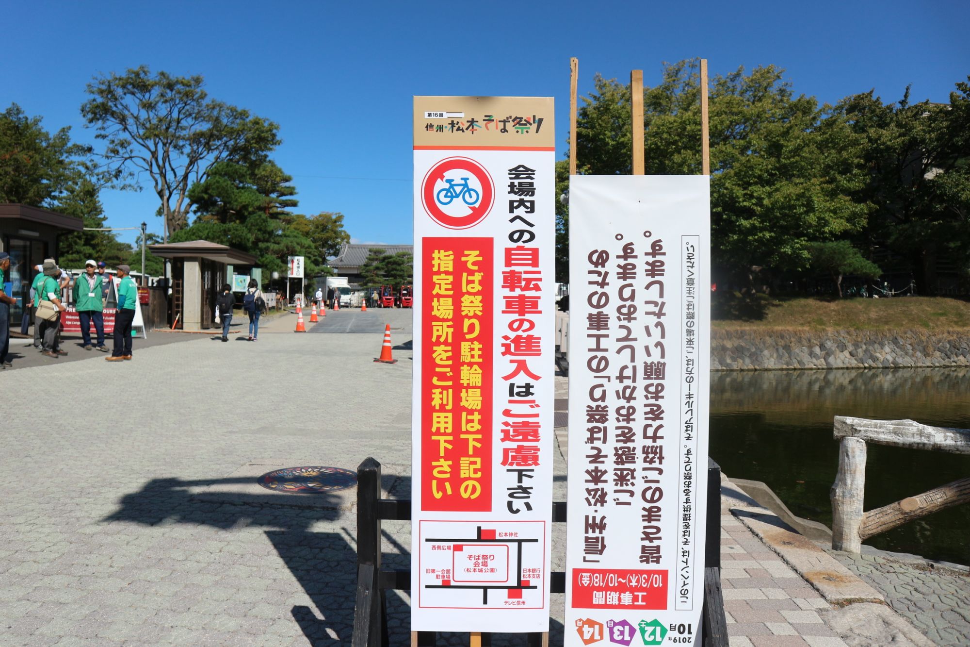 松本城公園では、12日から3日間始まる「そば祭り」の準備が始まっていました。