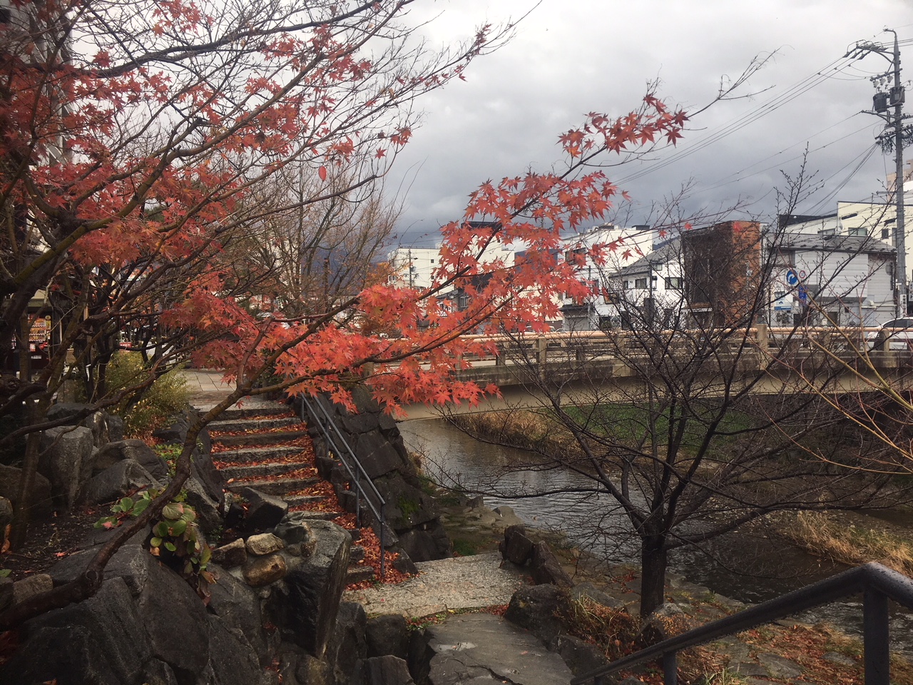 縄手通りを通り四柱神社前の幸橋の袂の紅葉