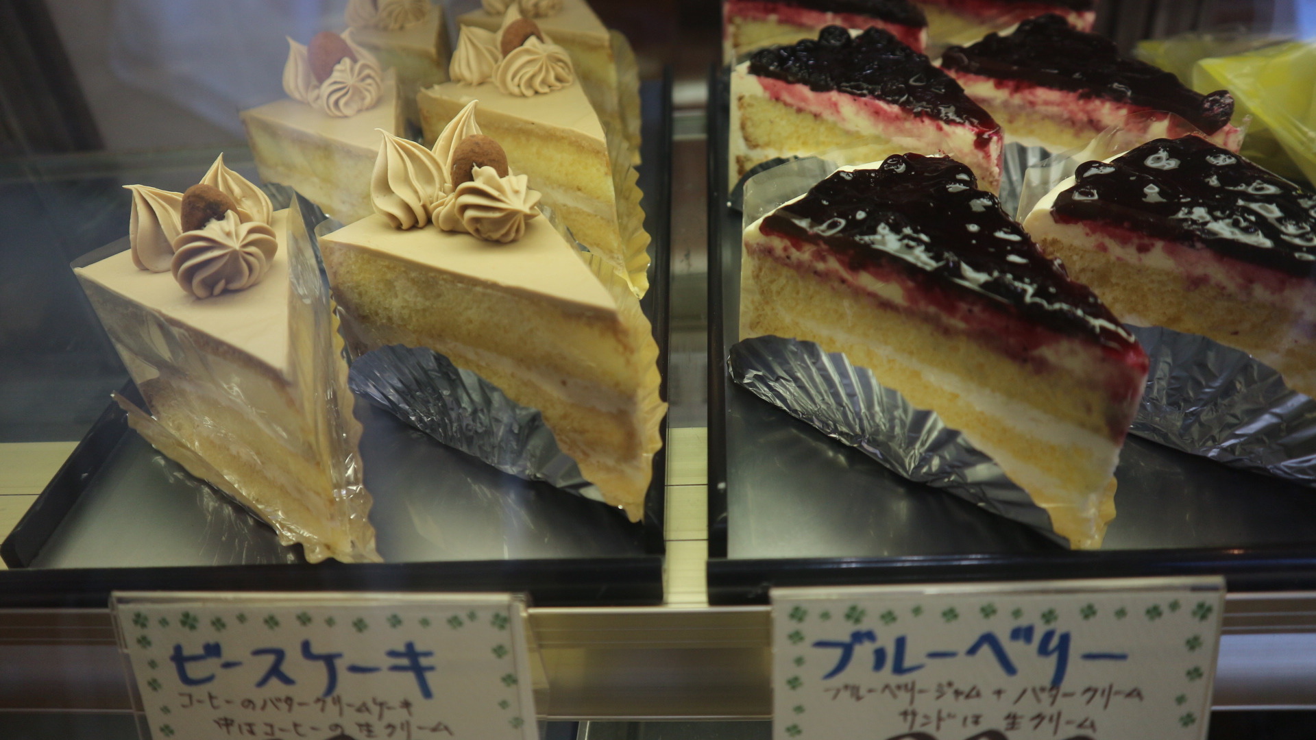 昭和のケーキが多く並んでいます。中には今流行りの「台湾かすてら」もあります。