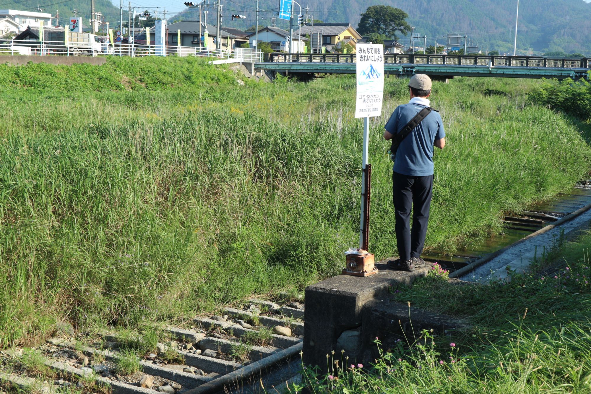 川の水を浅間温泉側の田んぼに引き込んでいます。