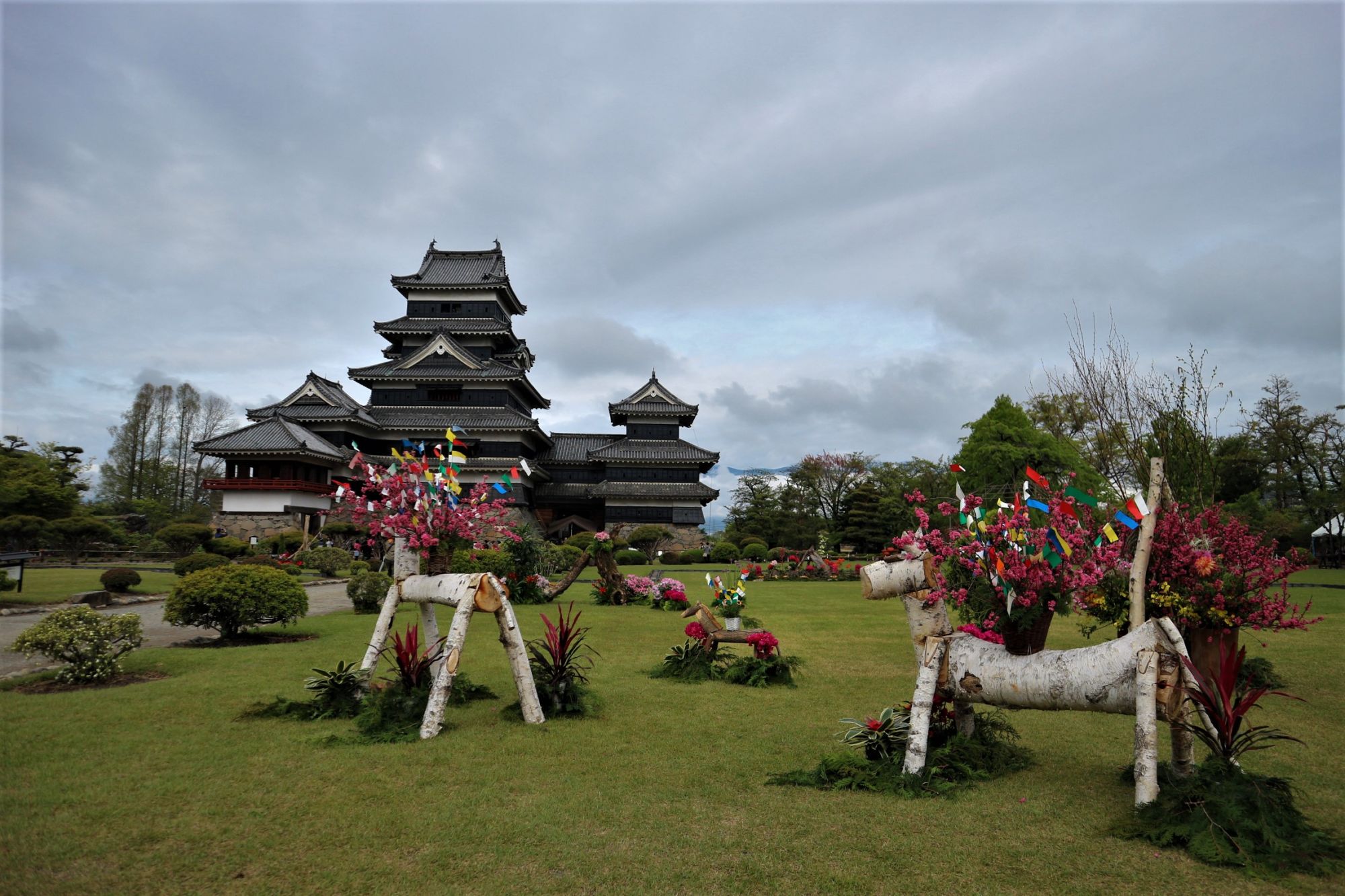 GWの国宝松本城 令和元年五月一日松本市制施行112周年教育文化施設を無料開放&真派青山流野外いけばな展