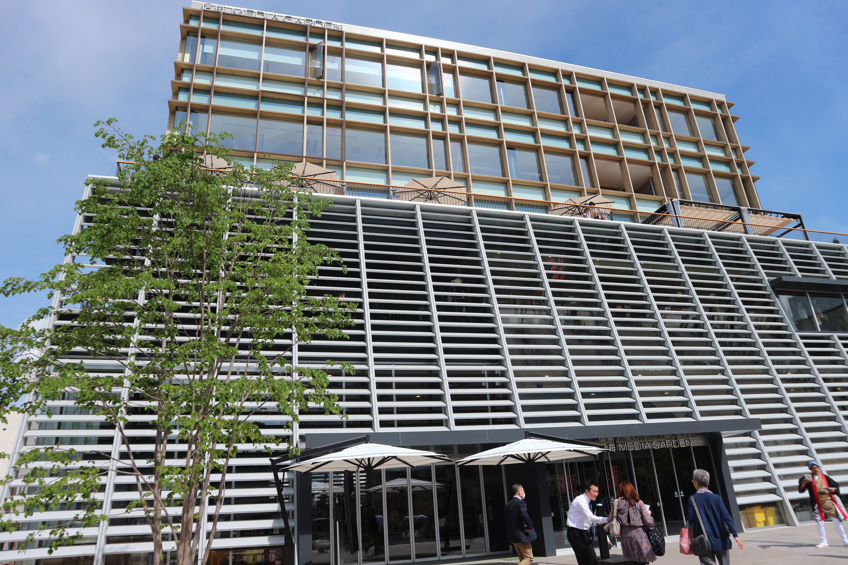 伊東氏:3階のテラス(一部)は、だれでも活用できる気持ちの良い場所になっています。また西側に向いていることでファサードにルーバー(羽板)状の外壁を使用して日差しを和らげる工夫をしています。東西に抜ける風の道も確保し、北側に流れる蛇川の水を空調に利用しています。自然エネルギーや風を効率よく使い、環境に配慮した設計をしています。