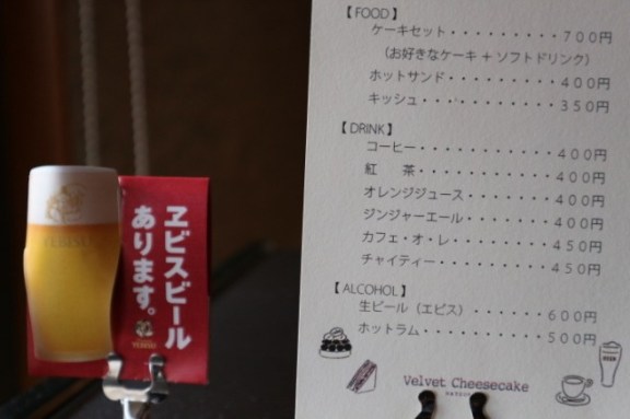 ドリンクメニューは、珈琲,紅茶だけではなく、生エビスビールもあるのが嬉しいです。