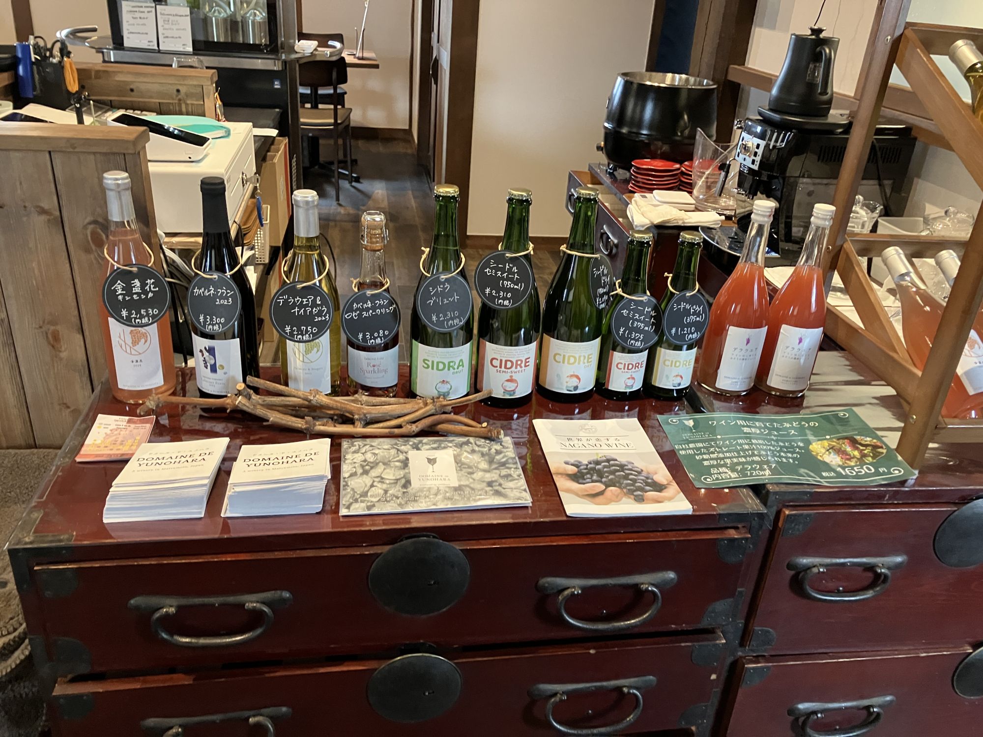 So zum Beispiel das Weingut „Domain de Yunohara“ im Bezirk Utsukushigahara Onsen, in dem sich viele alteingesessene Ryokan (Gasthäuser) befinden. Hier werden Wein und Apfelwein aus lokal angebauten Trauben und Äpfeln hergestellt.