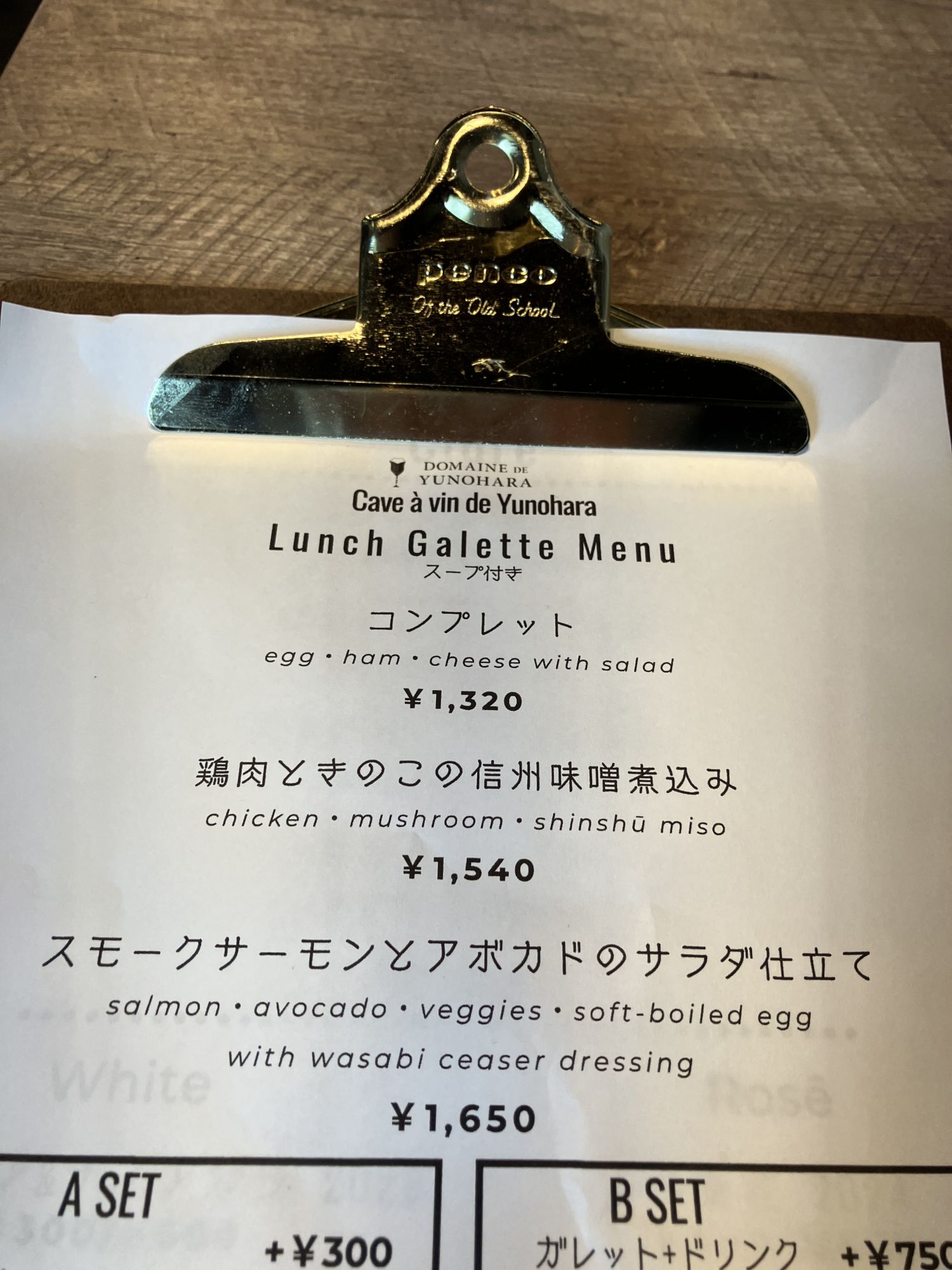 Im Obergeschoss des Weinkellers befindet sich die Vinothek „Carve à Vin de Unohara“, ein Restaurant, das auf Galettes spezialisiert ist, die nur zur Mittagszeit angeboten werden. Die Galettes werden mit Buchweizenmehl aus der Präfektur Nagano hergestellt und mit Gemüse der Saison serviert.