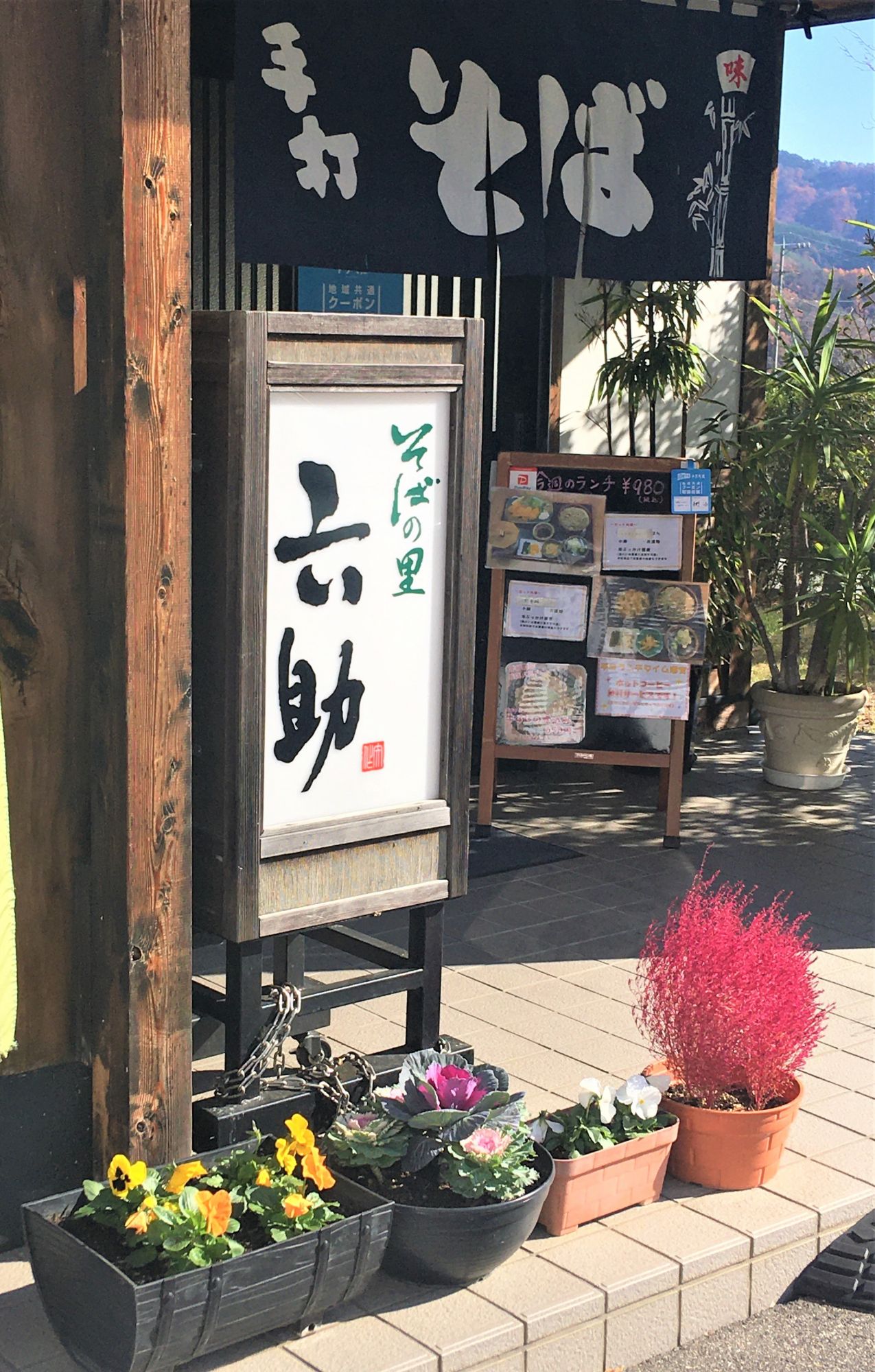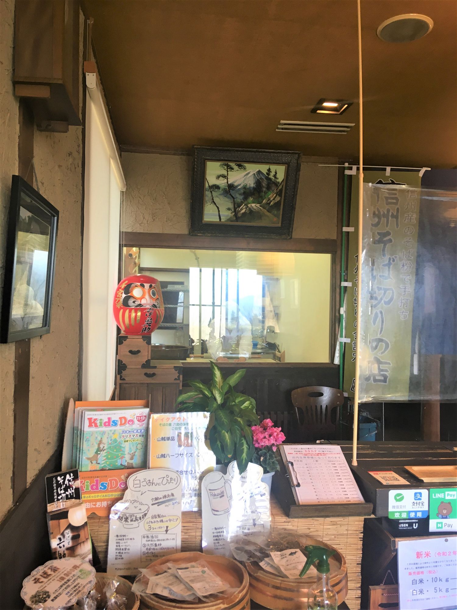 Buchweizennudeln, bzw. Soba-Nudeln, sind eine Spezialität der Shinshu Region und das Restaurant Rokusuke bezeichnet sich als „Heimat der Soba-Nudeln“ (そばの里 六助), zumindest ist das der Name des Geschäfts.