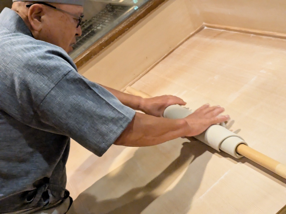 Herr Yamazaki ist Ryokanbesitzer in Asama Onsen – und ein echter Soba-Profi. Mit viel Leidenschaft zeigt er, wie traditionelle Shinshu-Sobanudeln gemacht werden. Für ihn ist Soba mehr als nur Essen: Es ist Handwerk, Tradition und Hingabe.