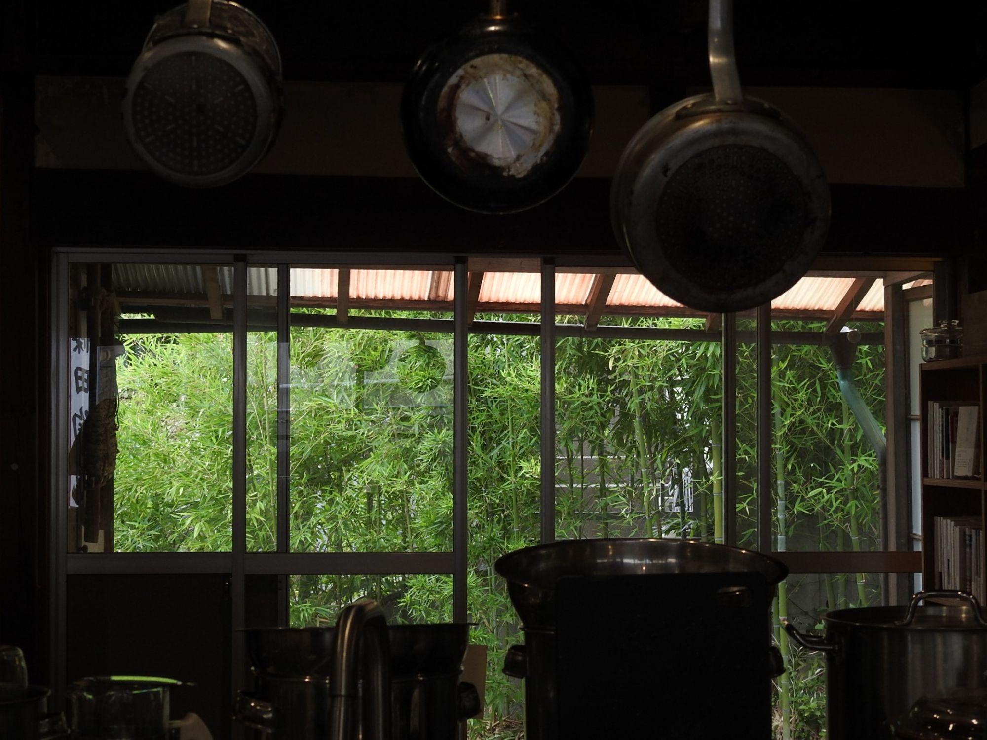Ein Blick in den Garten hinterm Haus verwöhnt die Augen mit grünem Bambus.