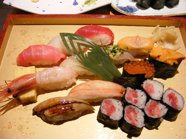Sushi ist ein japanisches Gericht, das aus geformten gesäuertem Reis besteht, welcher hauptsächlich mit rohem Fisch belegt wird. Es gibt auch andere Varianten, zum Beispiel mit einer Art Rührei. Sushi isst man normalerweise mit Essstäbchen, es ist aber auch erlaubt die Finger zu benutzen.