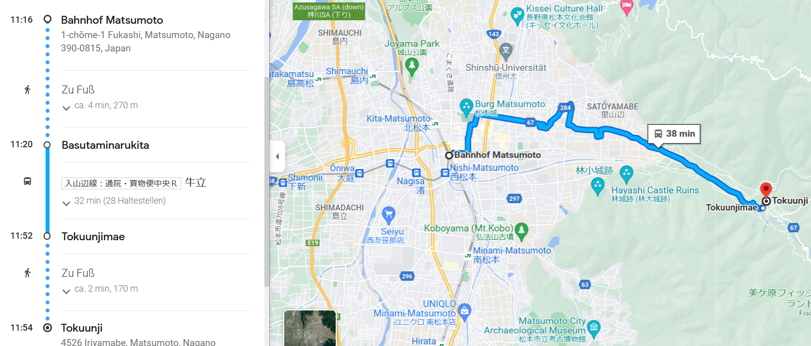 Es fährt auch ein Bus zum Tempel, die Iriyamabe-sen (入山辺線), die Haltestellte heißt Tokuunji mae (徳運寺前).