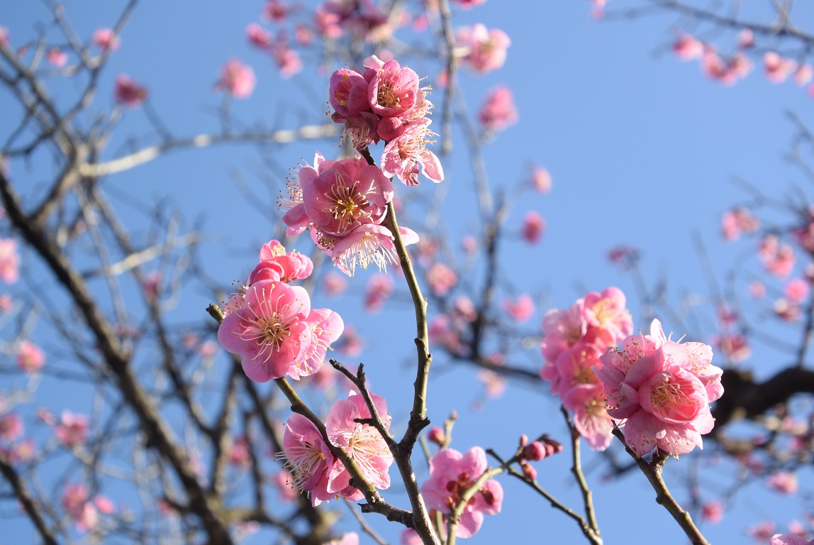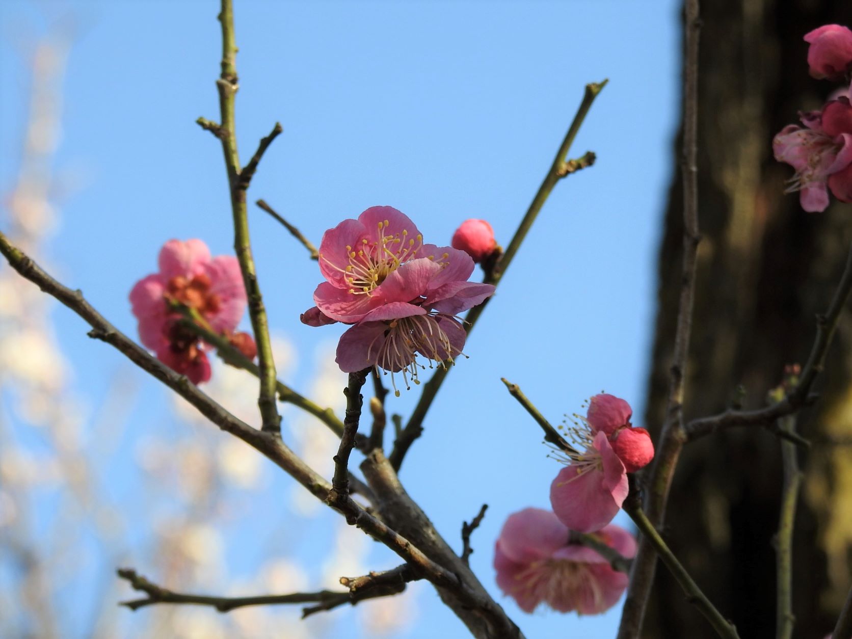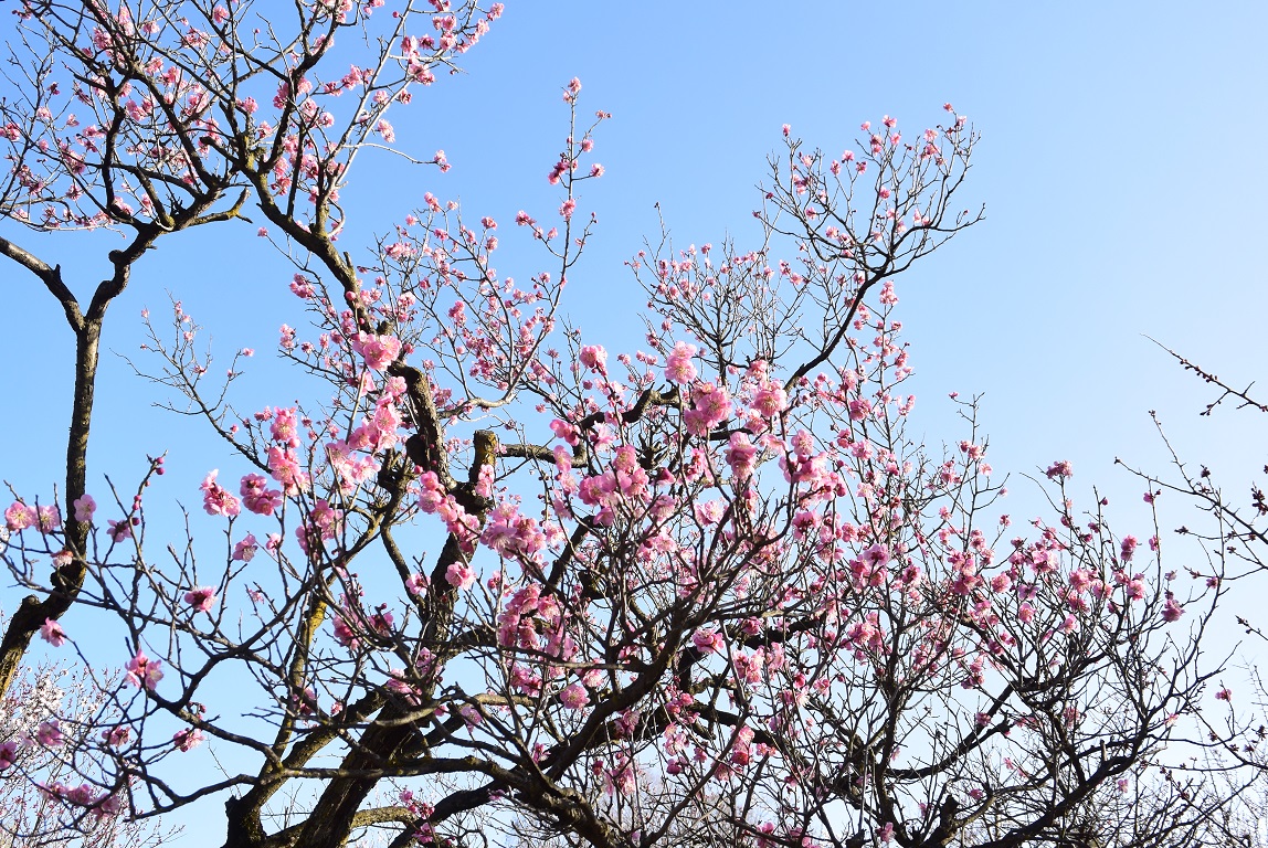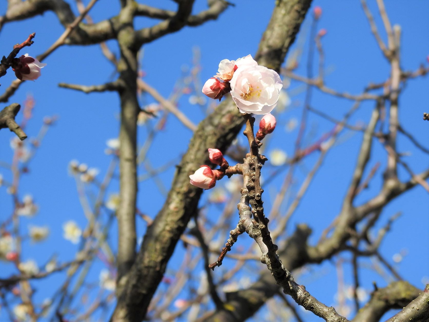 Zum Frühlingsbeginn blühen an der Burg Matsumoto die Pflaumenbäume, noch bevor die Kirschbäume den Burggraben in einen rosa Blütentunnel tauchen.