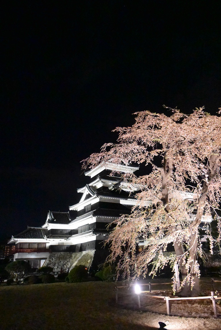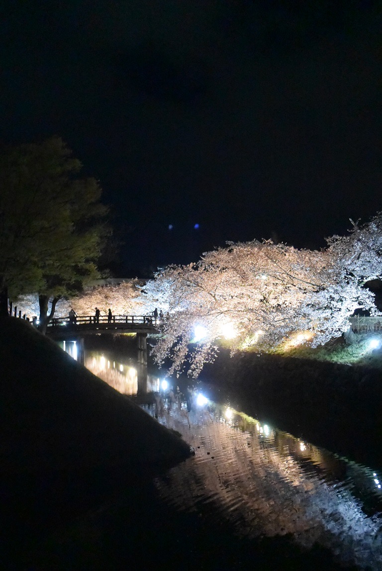 Für eine kurze Zeit werden die Kirschblüten im Burghof und am Burggraben entlang in der Nacht beleuchtet.