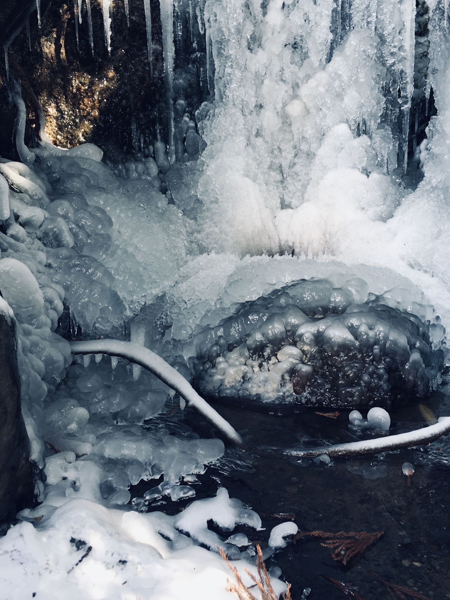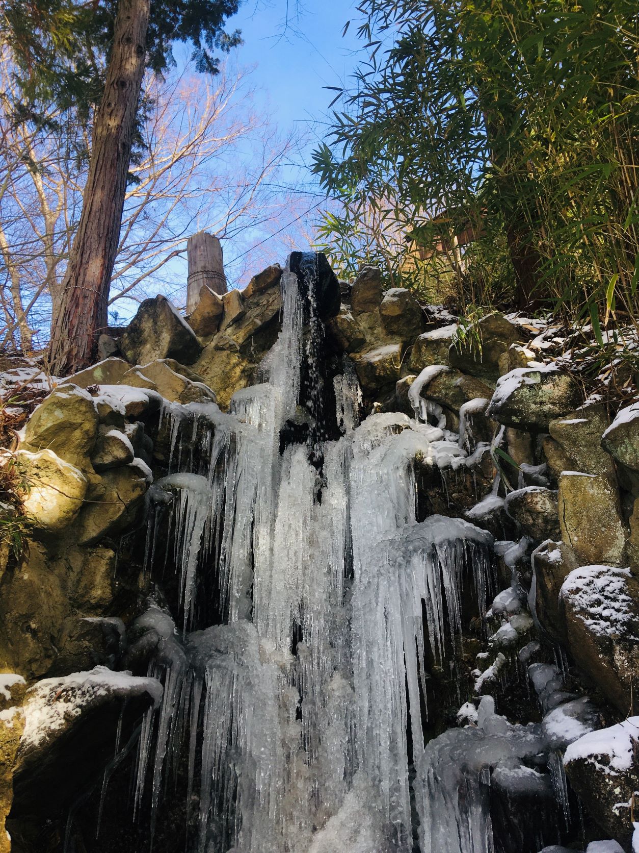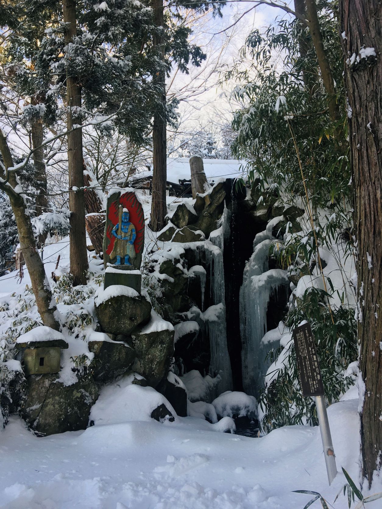 Eisige Kulissen findet man auch fernab des Festivals, wie z.B. an Flüssen, Häusern oder am Fudonotaki-Wasserfall in Asama Onsen.