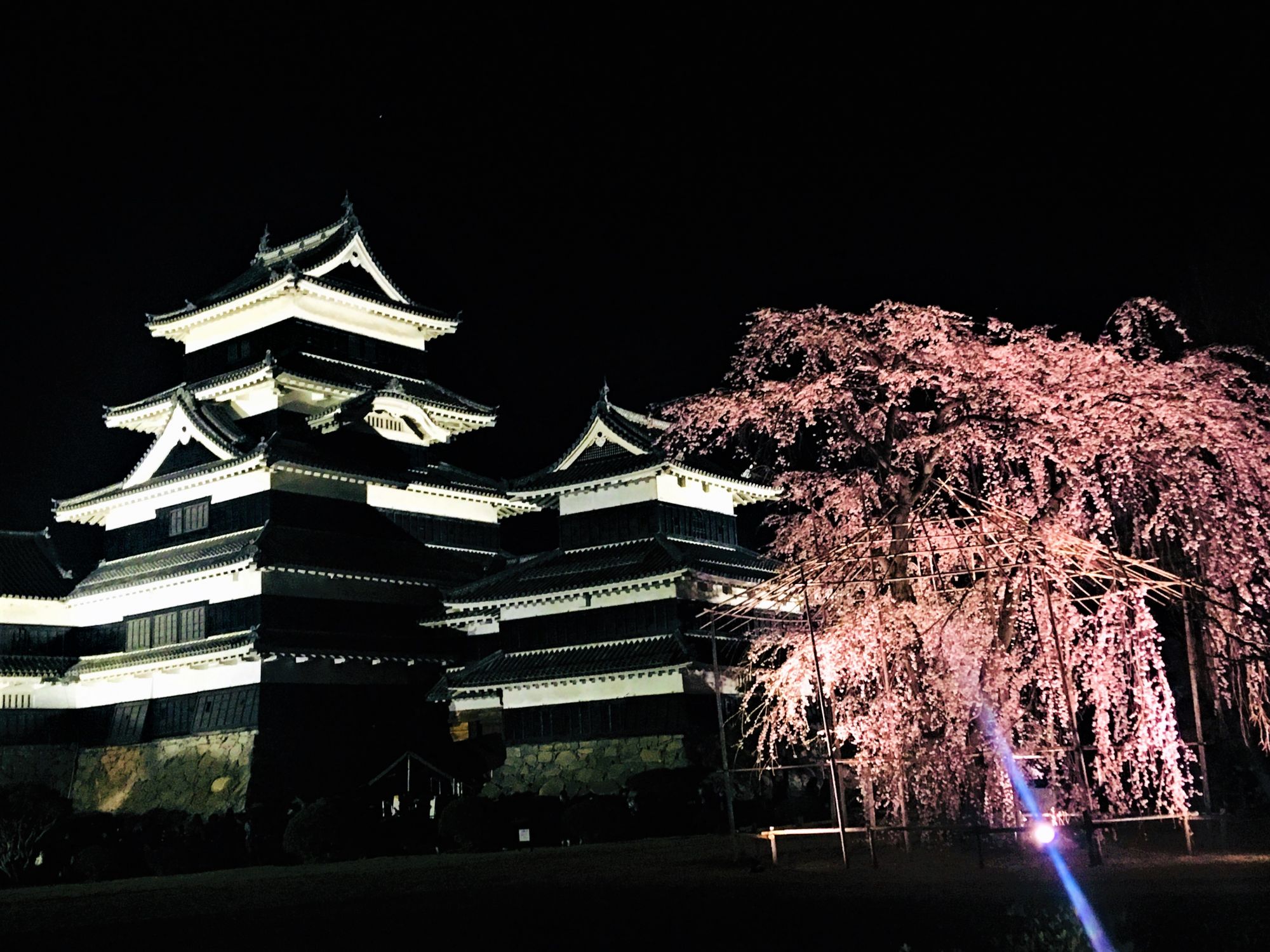 Das Nacht-Kirschblütenfest fand in diesem Jahr vom 10.-17. April an der Burg Matsumoto statt. Während des Fests werden die Burg und die Kirschbäume rund um den Burggraben hell beleuchtet, was einen eigenen Zauber besitzt.