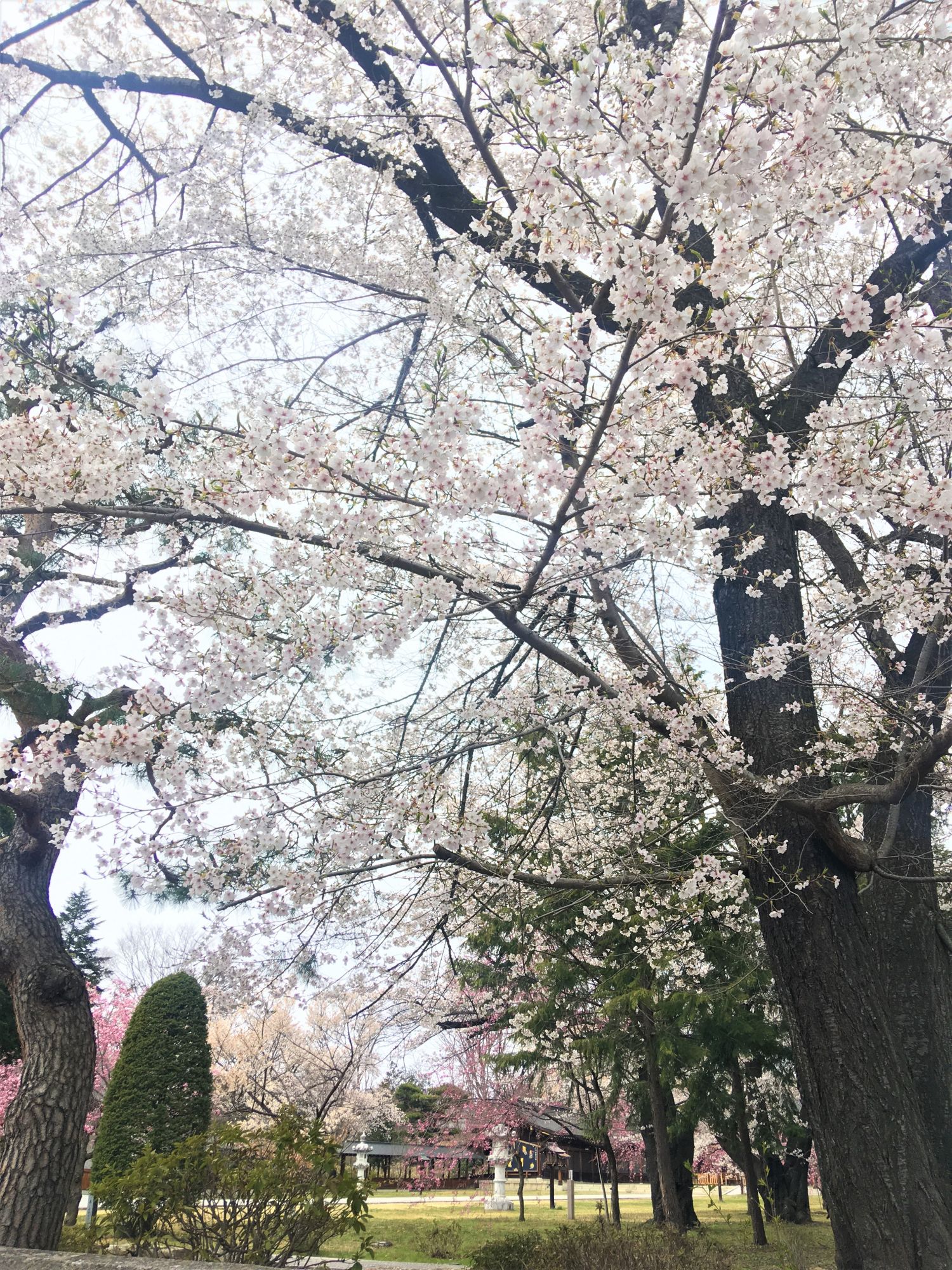 Ein berühmter Sakura-Schauplatz ist der Gokoku-Schrein (護国神社). Hier findet man verschiedene Kirschbaumarten und Farben hübsch arrangiert an einem Platz versammelt.