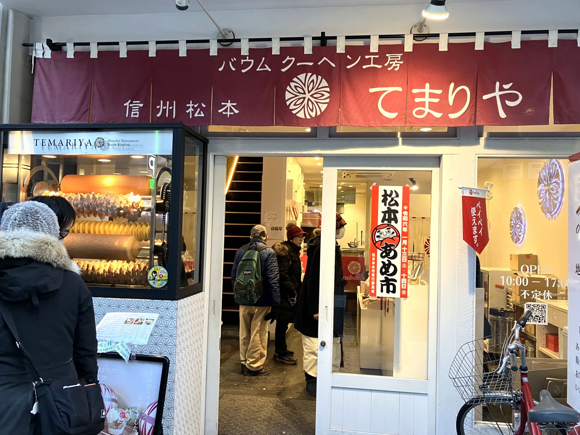 Die Baumkuchen gibt es in vielen Variationen, und es ist für jeden Geschmack etwas dabei. Der Temari-Baumkuchen ist besonders beliebt wegen seiner runden, niedlichen Form und weil die Temari-Kugel ein Symbol für Matsumoto ist.