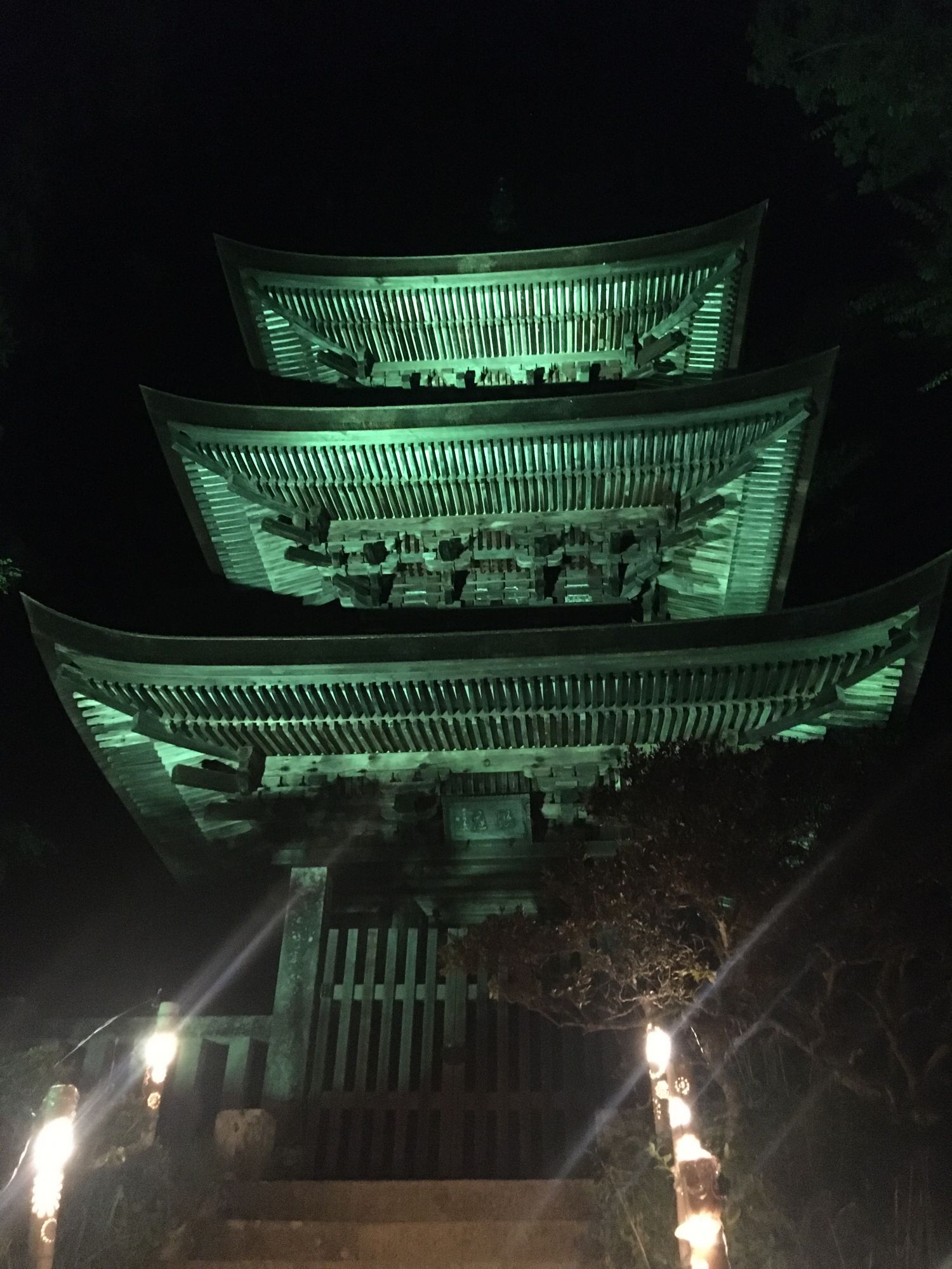 Bei einem Ausflug zum Daihō-ji Tempel kann man die wunderschöne Landschaft der Präfektur Nagano genießen. Diesmal habe ich die Pagode nur in der Nacht gesehen, aber im Winter mit Schnee bedeckt, muss diese auch wunderschön sein.