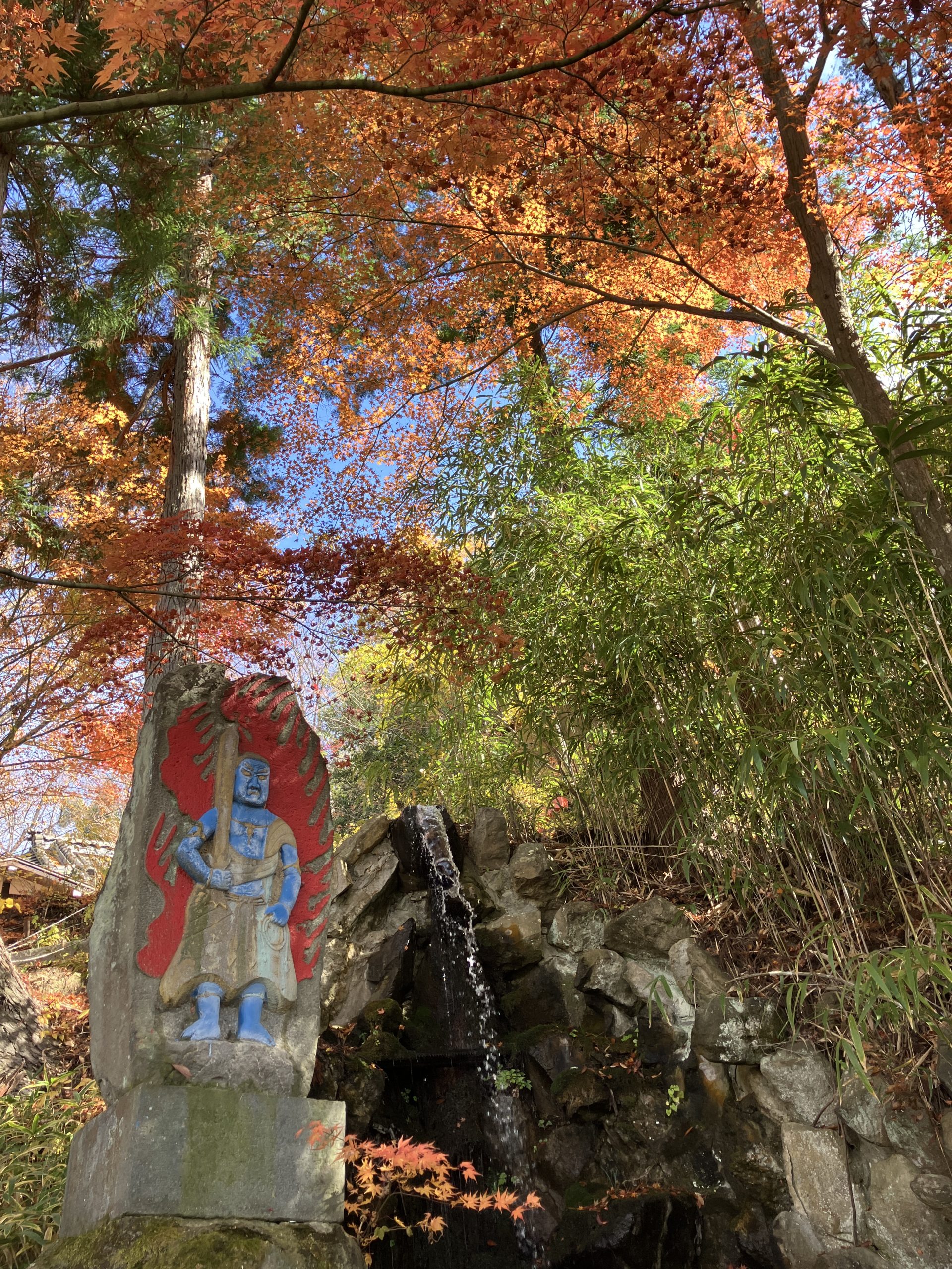 Wer in Asama Onsen unterwegs ist, sollte unbedingt den Daionjiyama in die Route einbeziehen. Der herbstbunte Berg bietet eine Aussicht auf den japanischen klaren Novemberhimmel. Auch der Fudonotaki-Wasserfall, umrahmt von den umliegenden Bäumen, ist einen Herbstbesuch wert.
