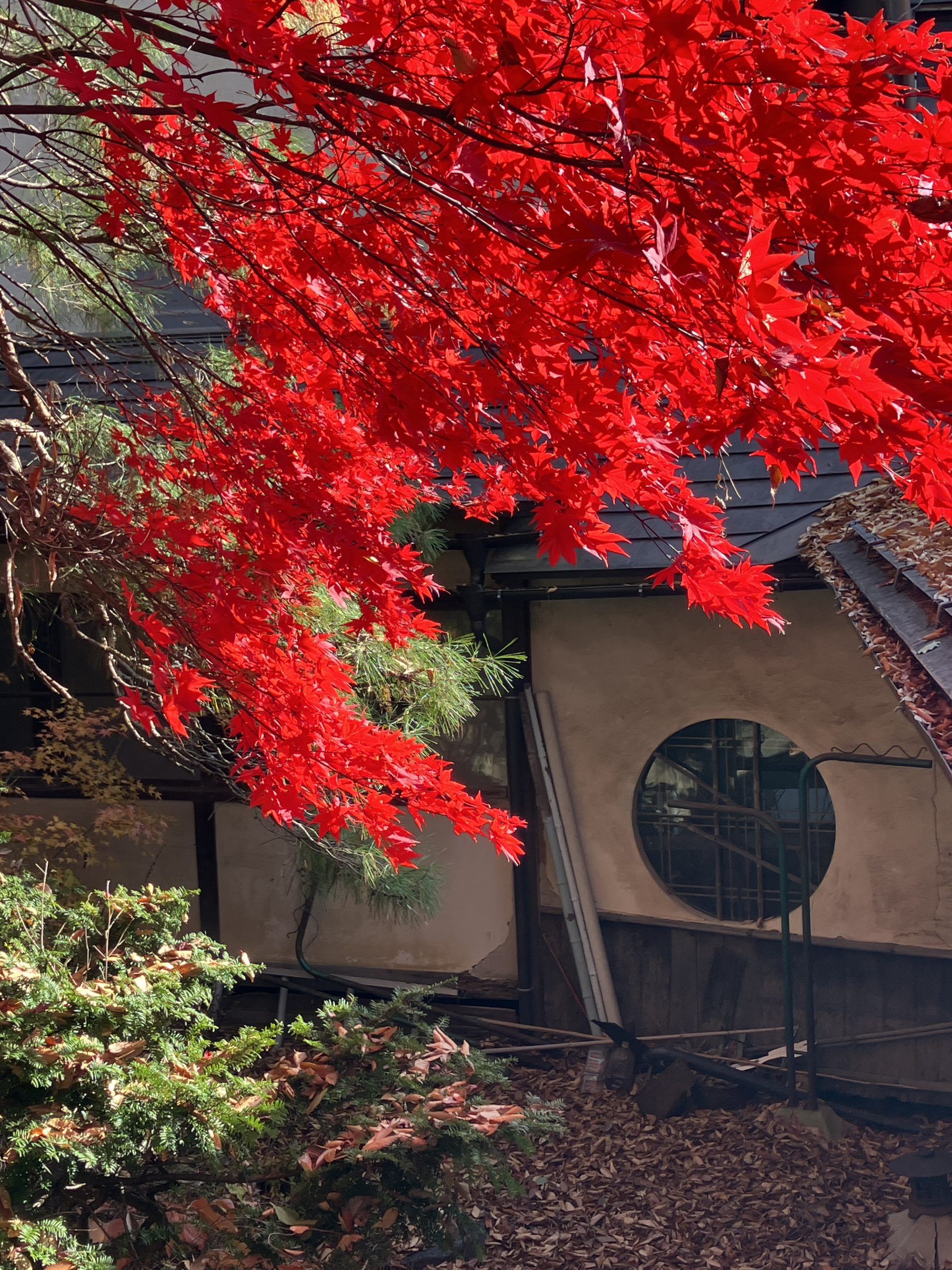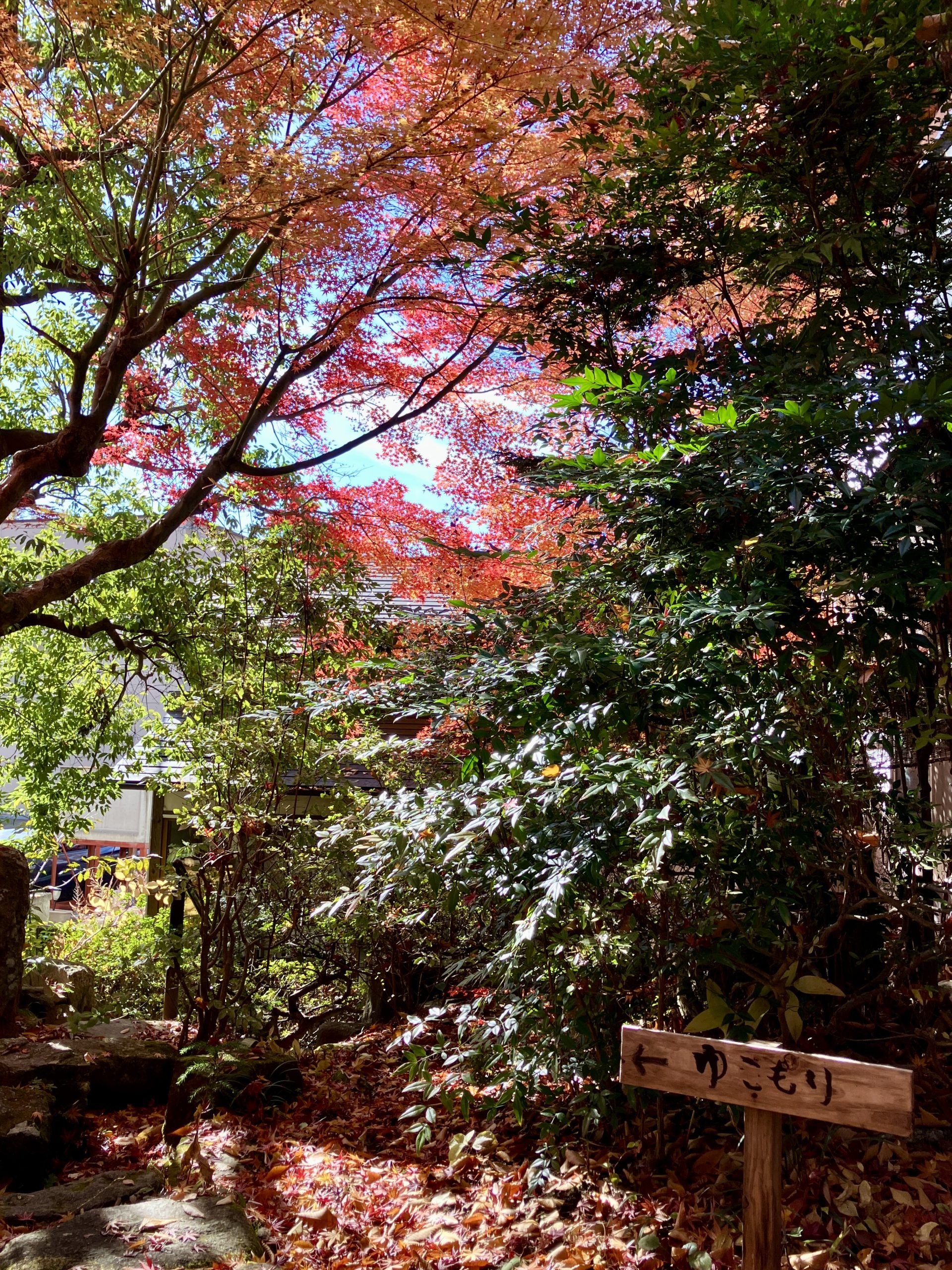 Der Weg vom Parkplatz hinunter zur Galerie führt durch einen Tunnel aus Momiji-Bäumen in den verschiedensten Röttönen. Der Blick aus der Galerie auf den Innengarten ist ein Highlight. So einen leuchtend feuerroten Baum habe ich noch nie zuvor gesehen. Es ist der perfekte Ort, um inne zu halten und die Farbenpracht zu genießen.