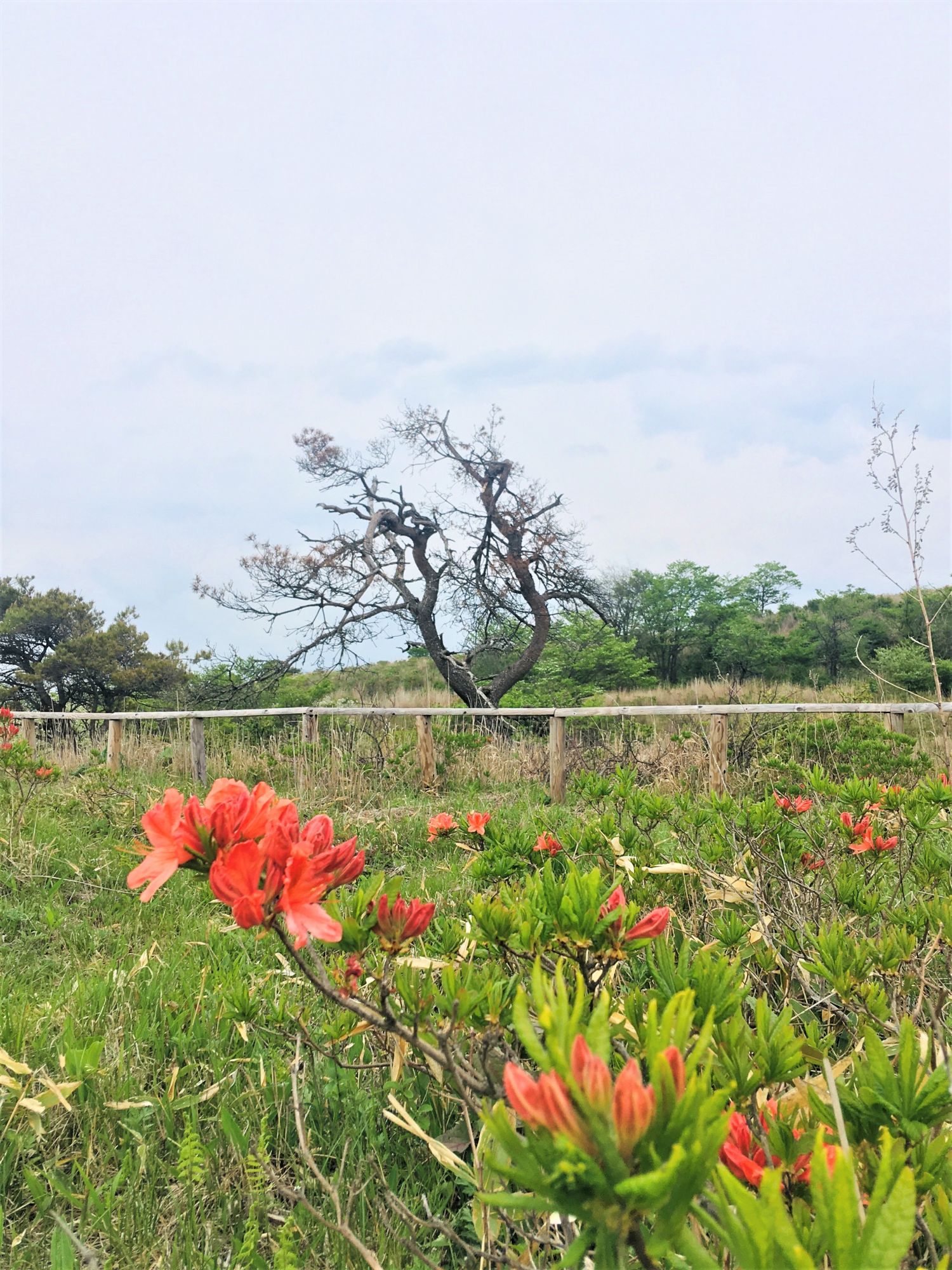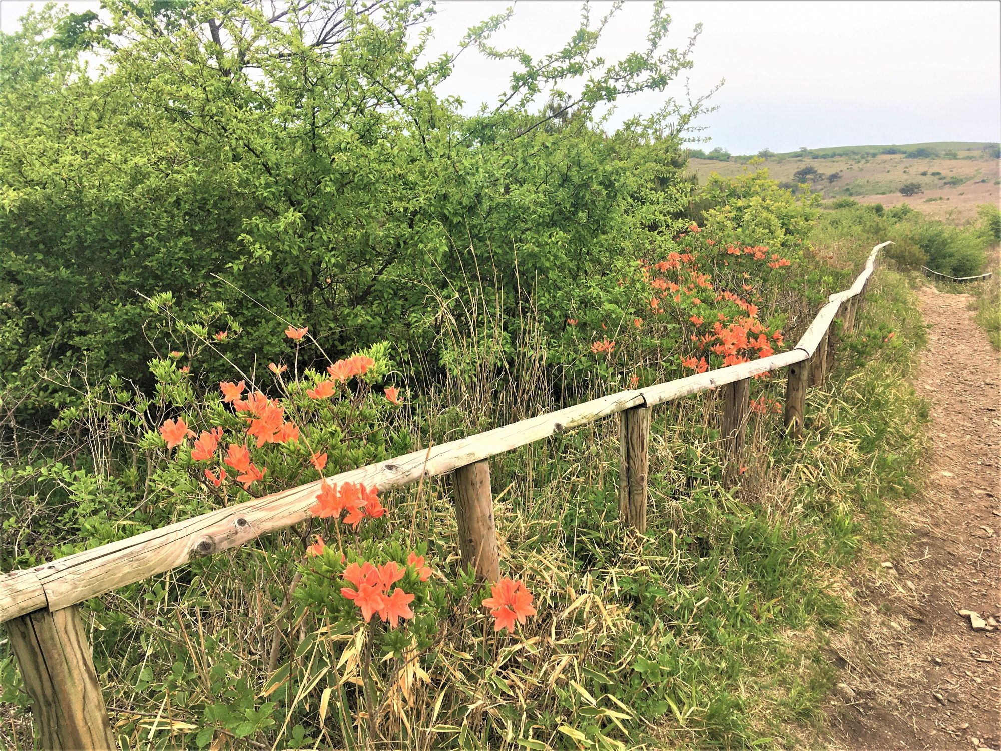 Berühmt ist das Plateau aber vor allem wegen seiner alpinen Flora. So wird im Juni das gesamte Grasland orange eingefärbt, wenn die Japanischen Azaleen (レンゲツツジ) blühen.