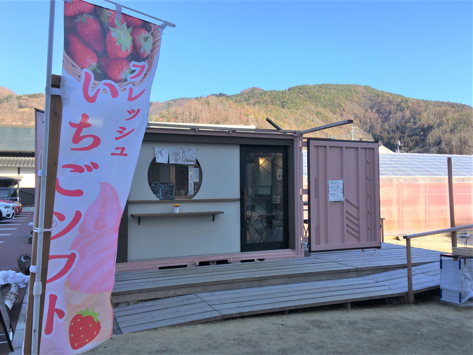Die Container entpuppen sich als kleiner Gemüseladen und Café; das Gewächshaus ist eine riesige Erdbeer-Plantage zum Selbstpflücken.